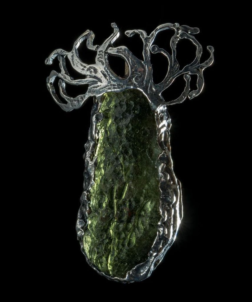 Surový jihočeský vltavín jako stříbrný přívěšek. Každý přívěšek je originál, budete mít jedinečný kus, který bude mít podobný styl i velikost jako na obrázku. Na Vaši žádost Vám před odesláním pošleme na email fotku skladových kusů.