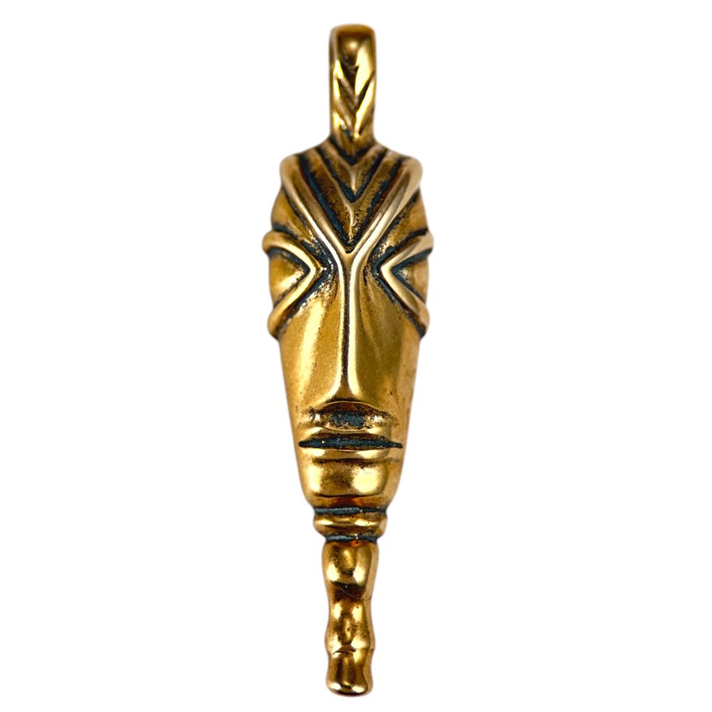 Keltský bronzový přívěšek hlavy muže s bradkou, jako inspirace pro jeho výrobu posloužil nález tzv. maskovité spony (fibuly) z Mikulovic na Pardubicku. Fibula byla vyrobena v raně laténském stylu (časové zařazení mezi lety 500 - 400 př.n.l.) Nálezy podobně tvarovaných spon jsou velmi unikátní. Hlava jakožto symbol byl u Keltů velmi oblíben. Staří Keltové si dokonce hlavy nepřátel brávali do svých příbytků - věřili, že jim dává sílu.