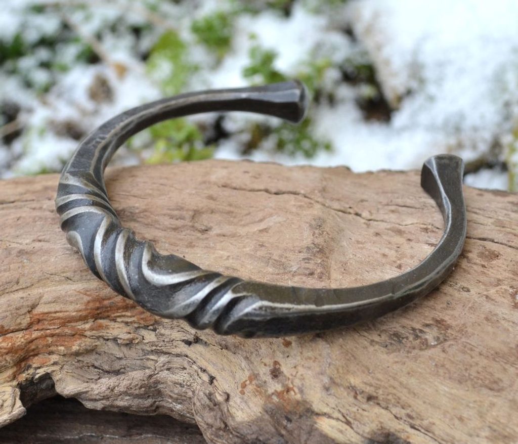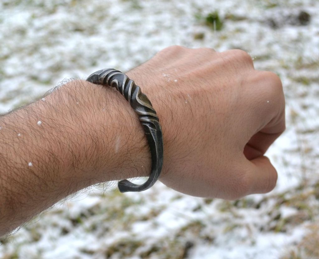 Masivní kovaný kroucený náramek inspirovaný starými keltskými a vikinskými šperky. Ručně tvarovaný z oceli, nese na sobě stopy kladiva a sílu poctivého řemesla.