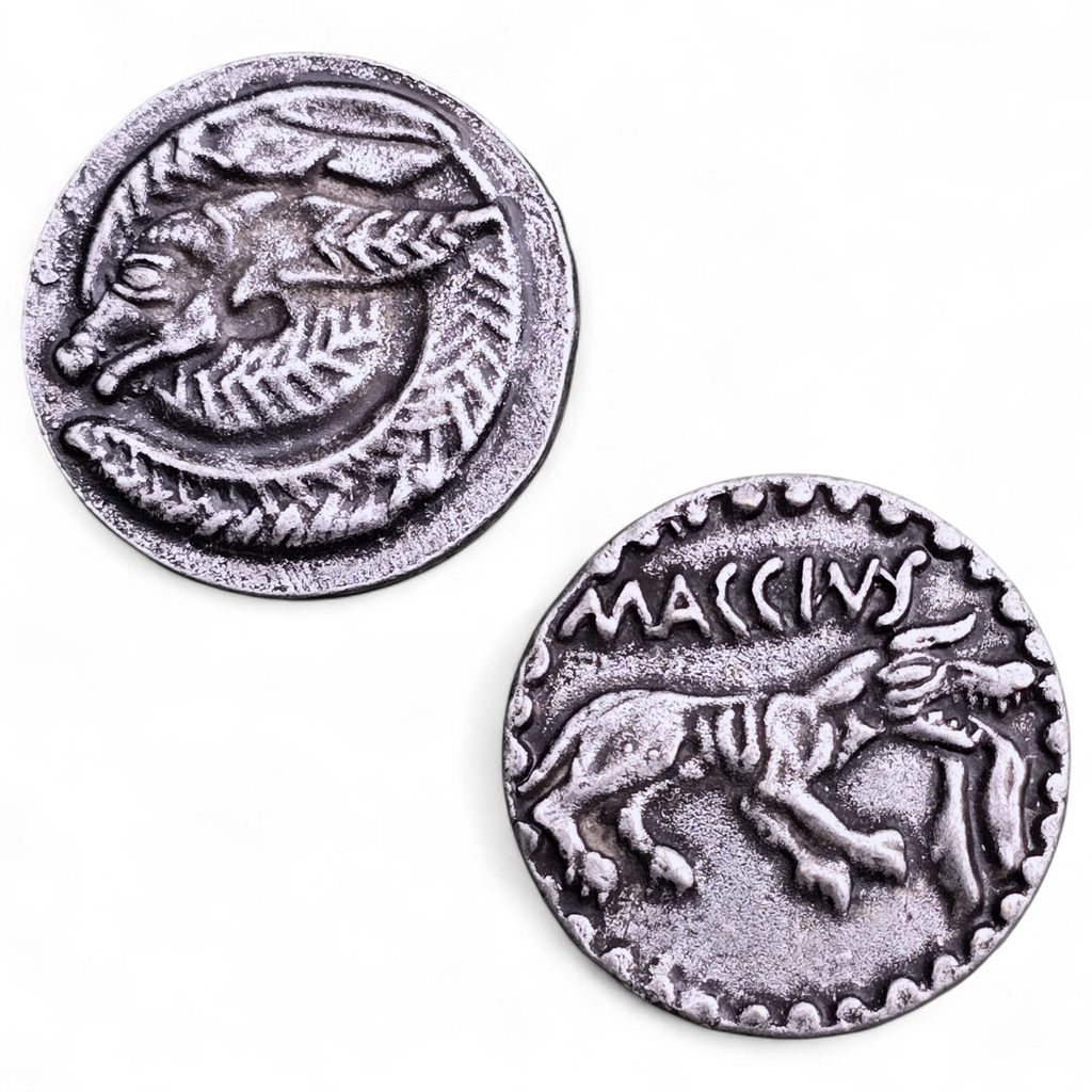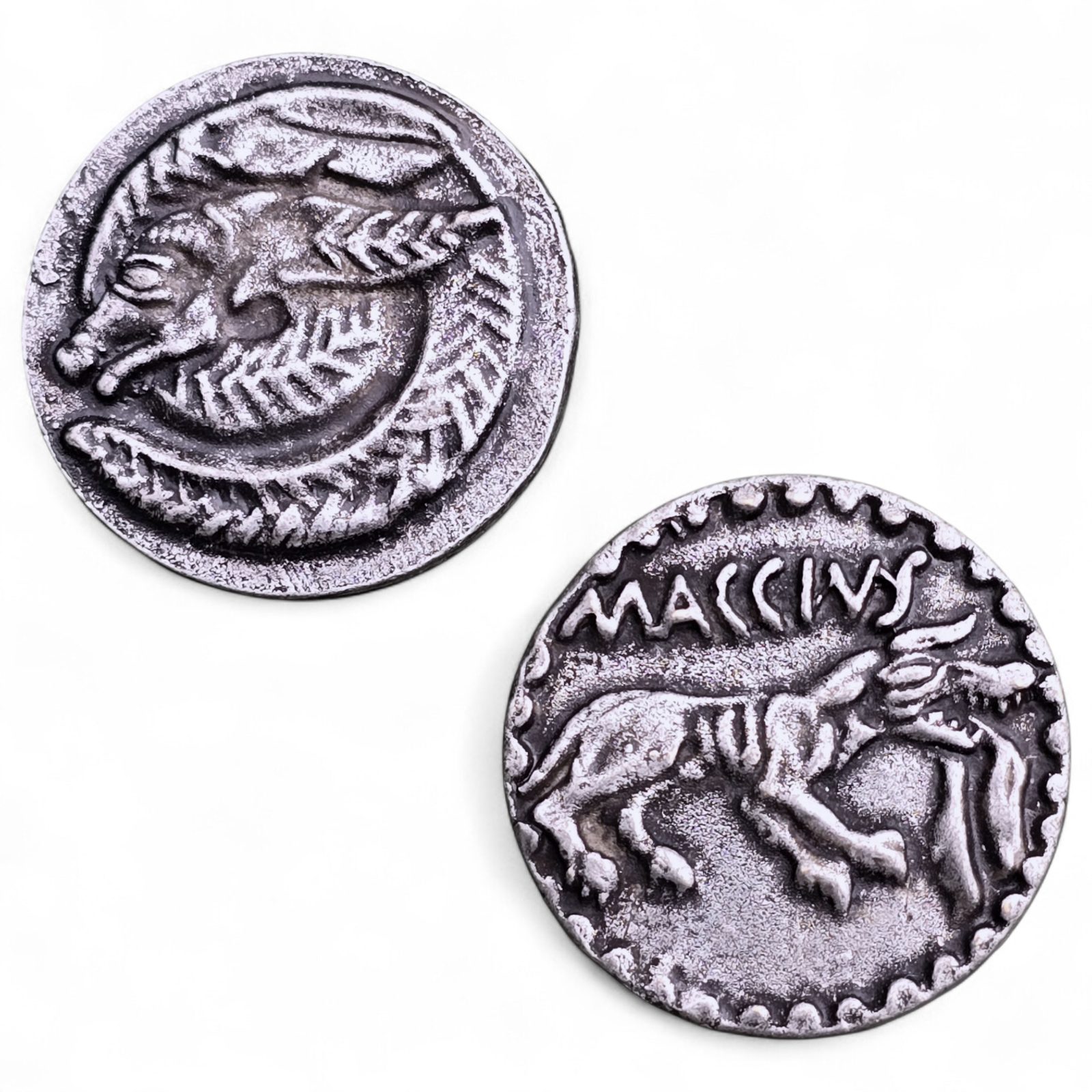 Keltská tetradrachma typu MACCIUS patří mezi významné mincovní ražby laténského období, datované zhruba do 1. století př. n. l. Tyto mince představují lokální adaptaci řecko-makedonských vzorů, především mincí Filipa II., přičemž keltské zpracování motivů postupně nabývá výrazně abstraktního charakteru. Na líci bývá stylizovaná hlava, na rubu zpravidla jezdec na koni doprovázený symboly a nápisem MACCIUS, jehož význam není jednoznačně vyložen – může jít o mincmistra, panovníka či rodové označení. Tetradrachmy sloužily nejen jako oběživo, ale i jako prestižní prostředek směny, často ukládaný do pokladů či užívaný v obchodních kontaktech se světem Středomoří.
