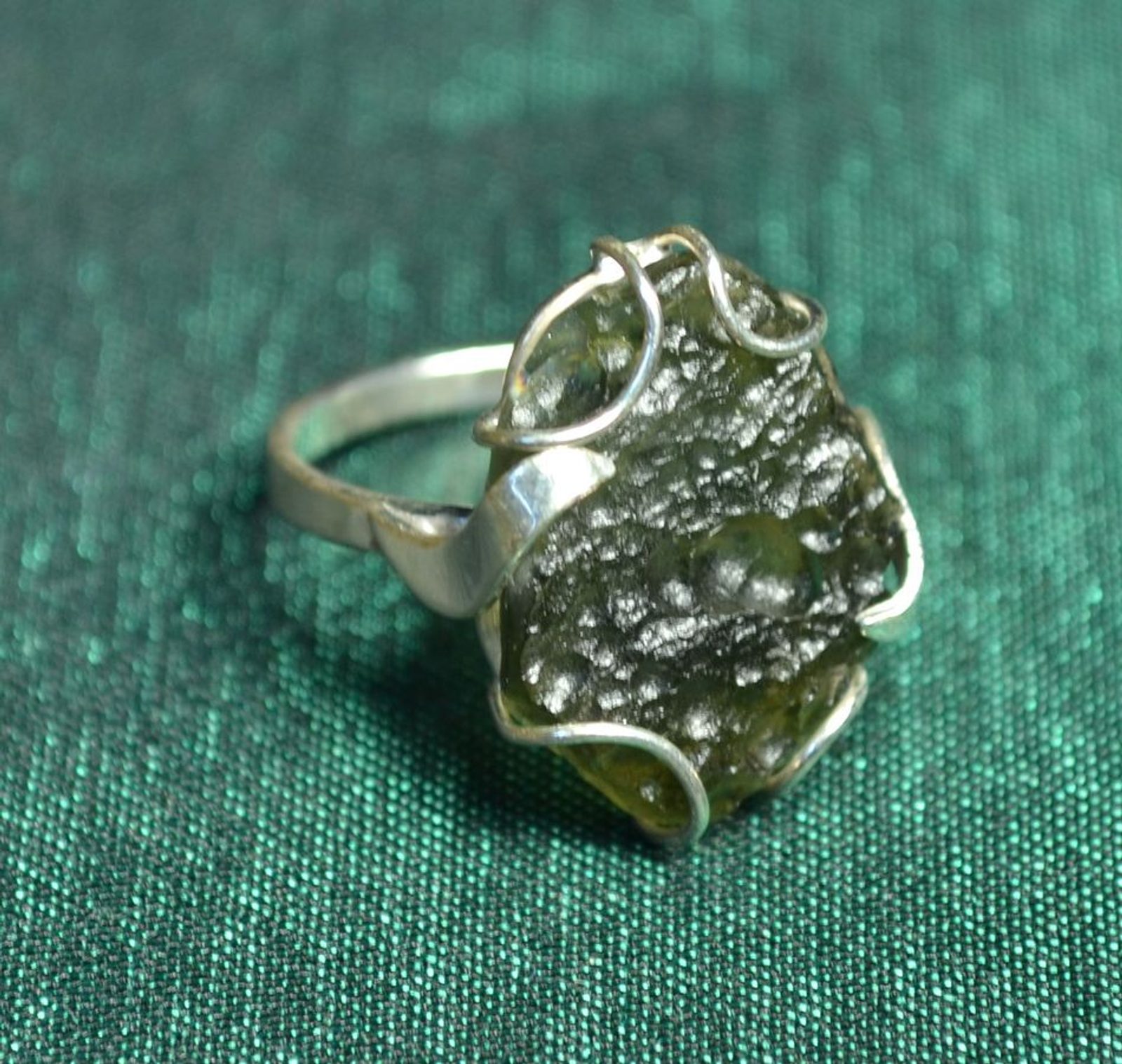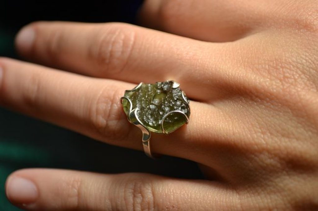 Stříbrný prsten se surovým vltavínem, Ag 925