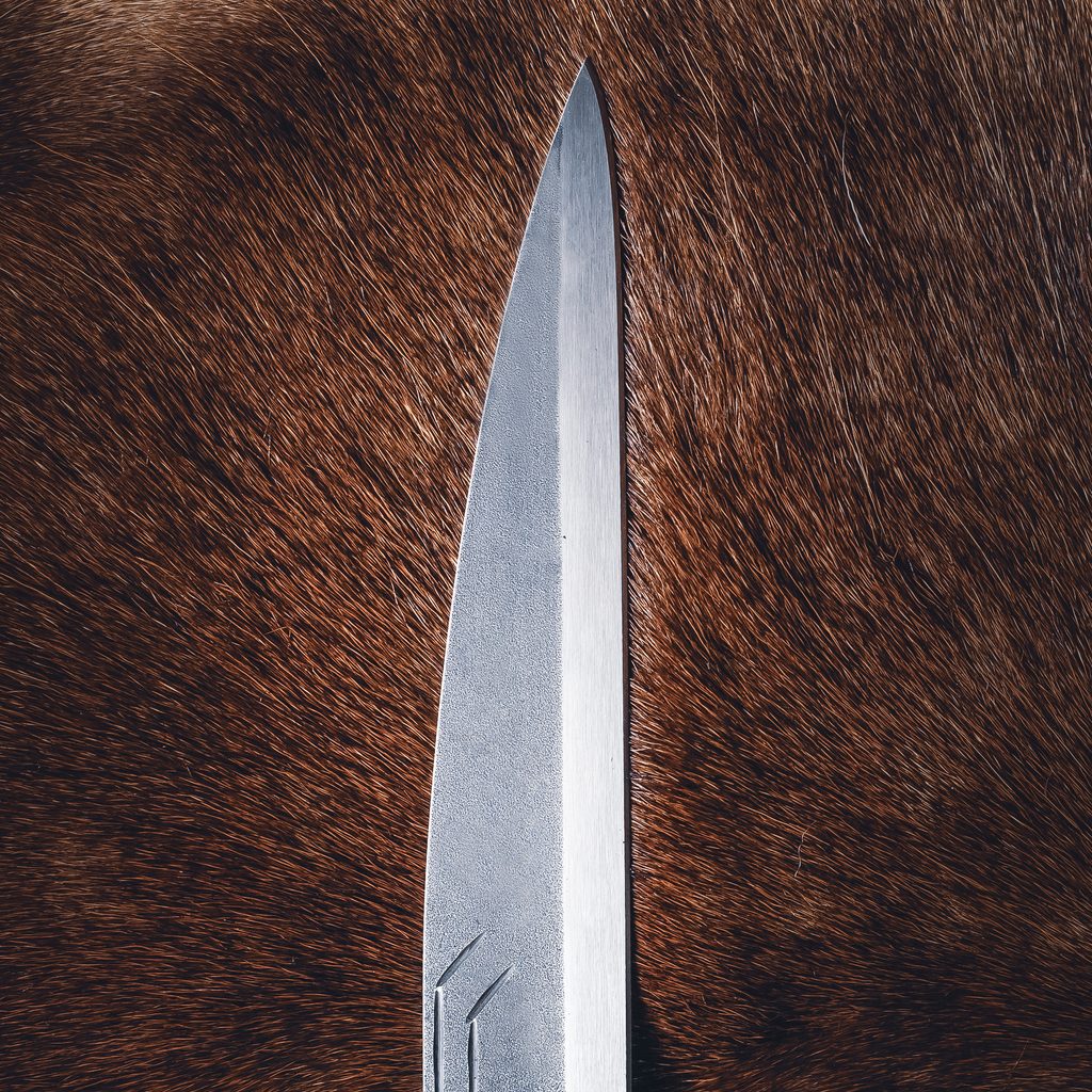 Ručně kovaný scramasax (sax - tesák) v tupé verzi konstruovaný speciálně pro historický šerm, platí tedy na něj samozřejmě záruka. Je vyvážený a použitá ocel má tvrdost cca 56 - 57 HRC.