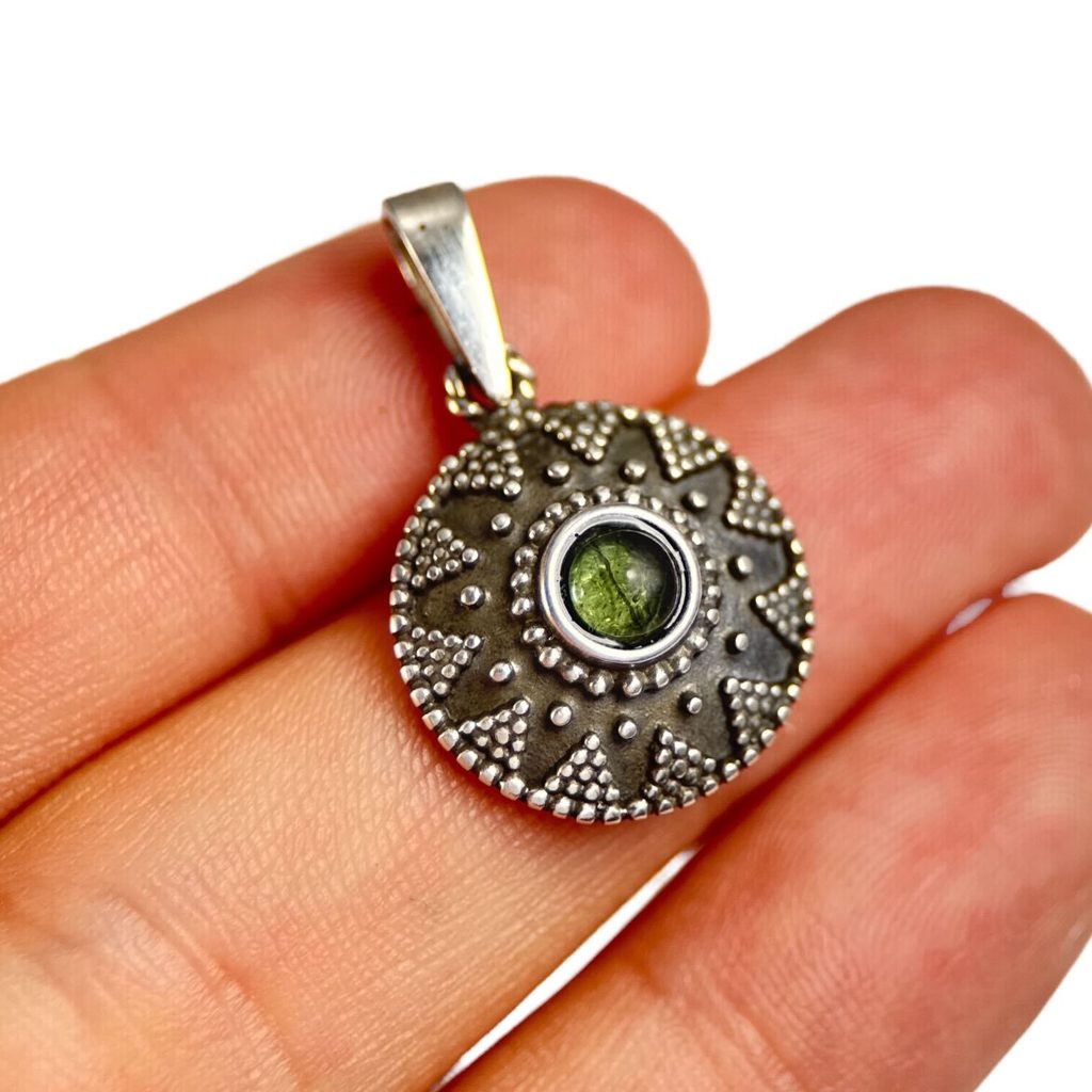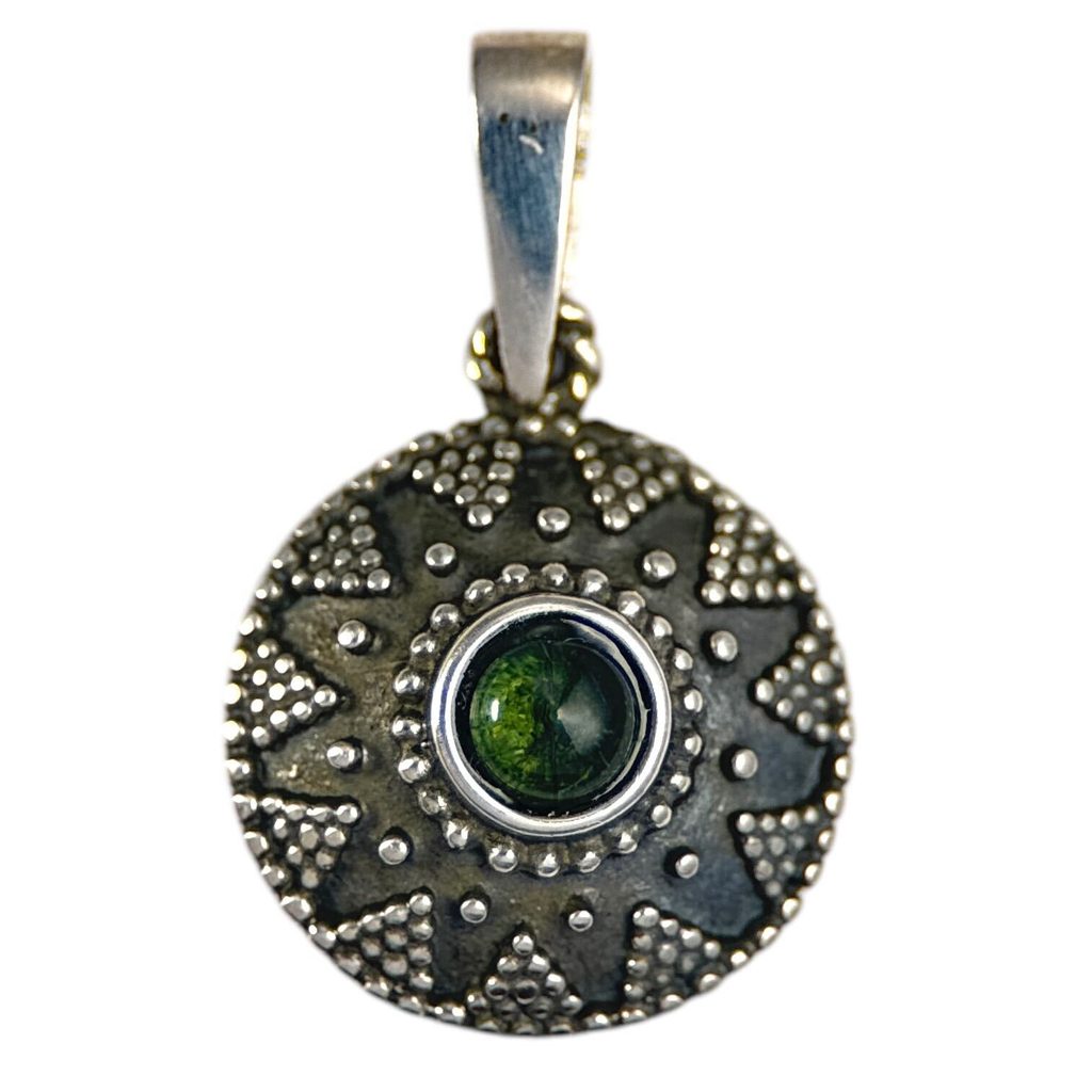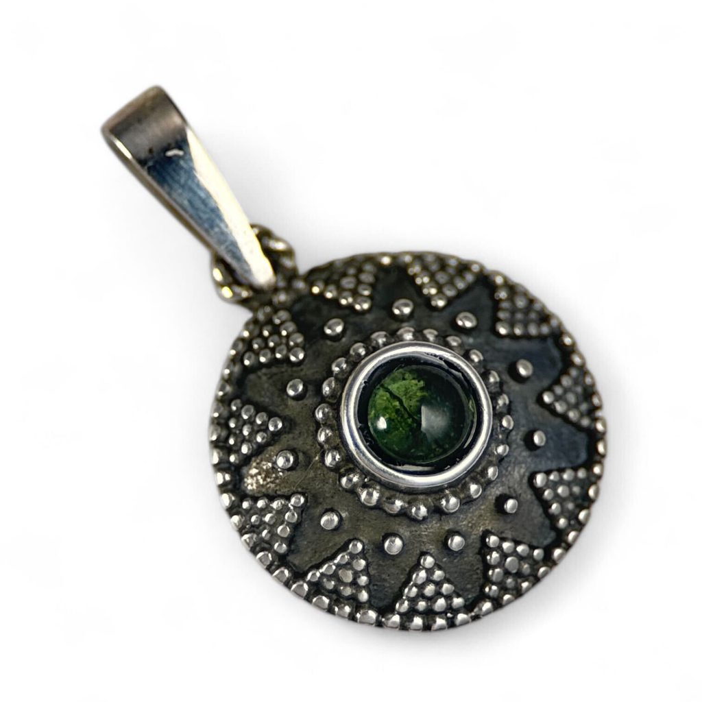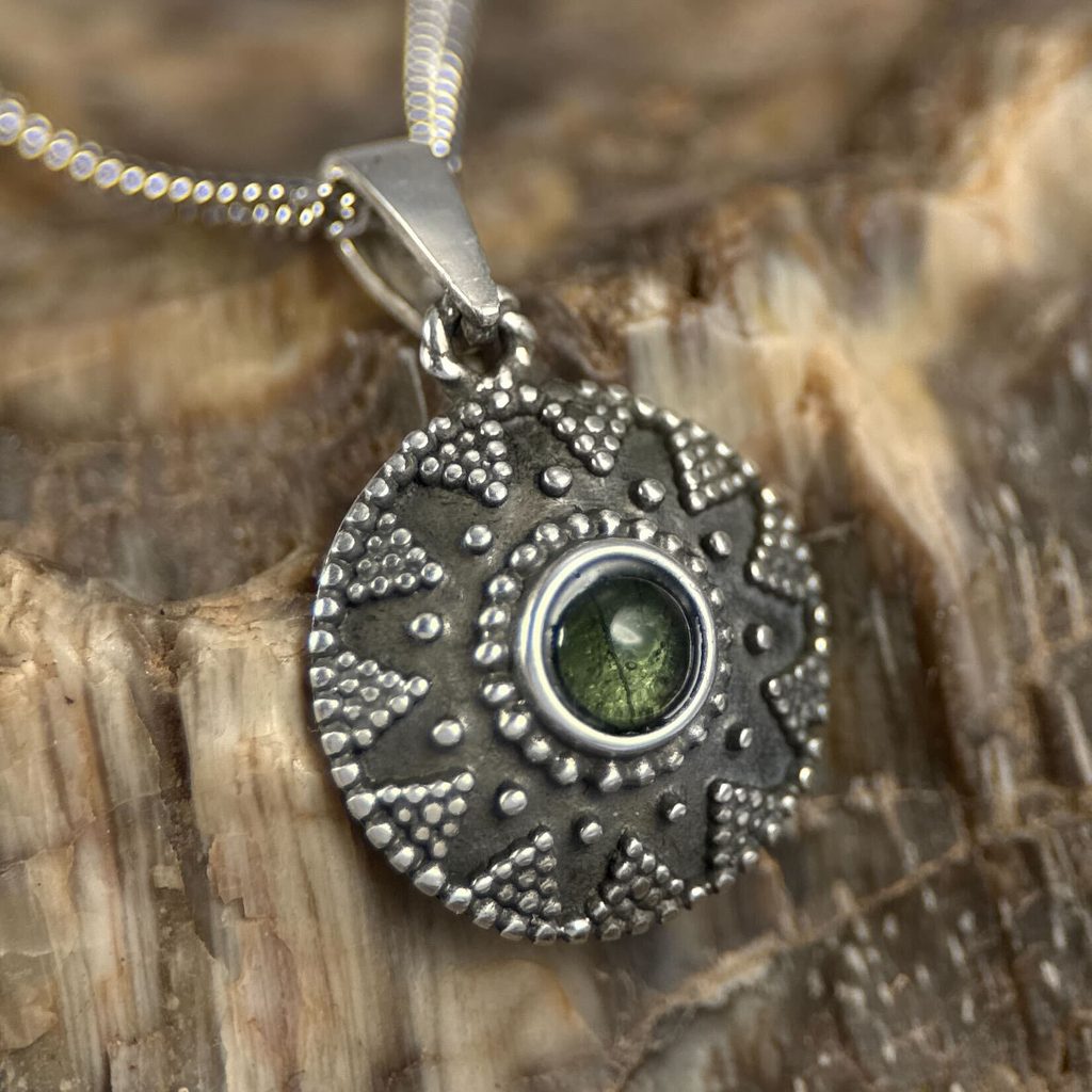 Stříbrný přívěšek se vsazeným kamenem. Inspirován římskými šperky.