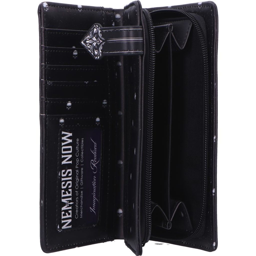 Tato stylová peněženka kombinuje gotický design s barokními prvky. Na povrchu vyniká detailní reliéfní vzor s motivem lebky a bohatými ornamenty, které dodávají peněžence výrazný, výrazově temný charakter. Vyrobena je z kvalitní syntetické kůže (PU), která je odolná vůči opotřebení a snadno se čistí.