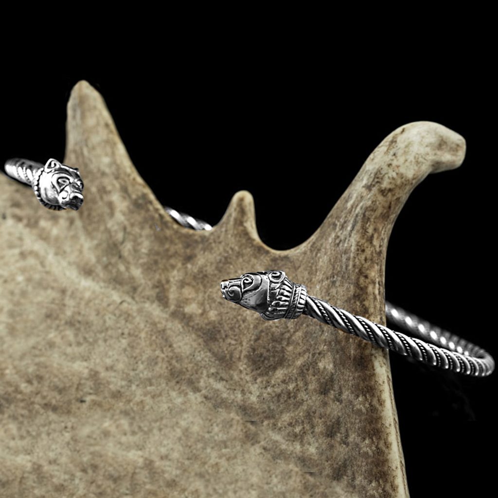 Masivní stříbrný torques s medvědími hlavami. Torques je latinský výraz pro nákrčník, společné pojmenování pro všechny pevné náhrdelníky v podobě kovových kruhů nošených na krku. Je znám od doby bronzové, v oblibě jej měli Římané a dále je považován za typický keltský artefakt. Tento šperk byl náboženským i světským odznakem moci, uctívání a ochrany, nosili jej bohové a bohyně, hrdinové, válečníci, kněžny a knížata; byl známkou vysokého společenského postavení a šperkem význačných žen.