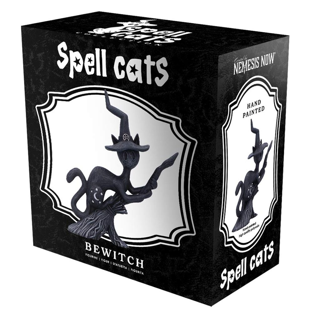 Figurka Spell Cats Bewitch je hravým a magickým doplňkem každé gotické nebo fantasy kolekce. Tato jedinečná soška zobrazuje černou kočku uprostřed letu, která sebevědomě sedí na koštěti.