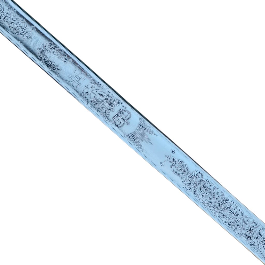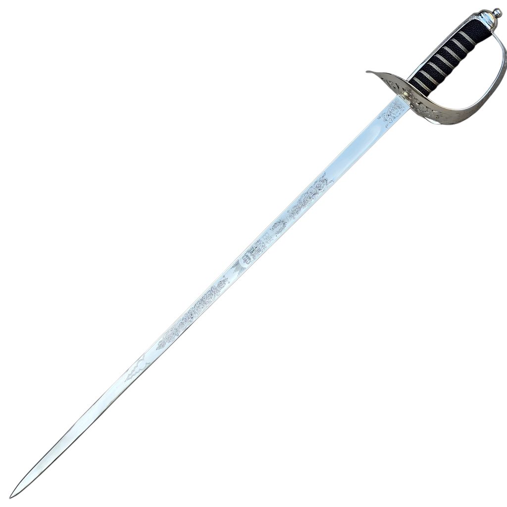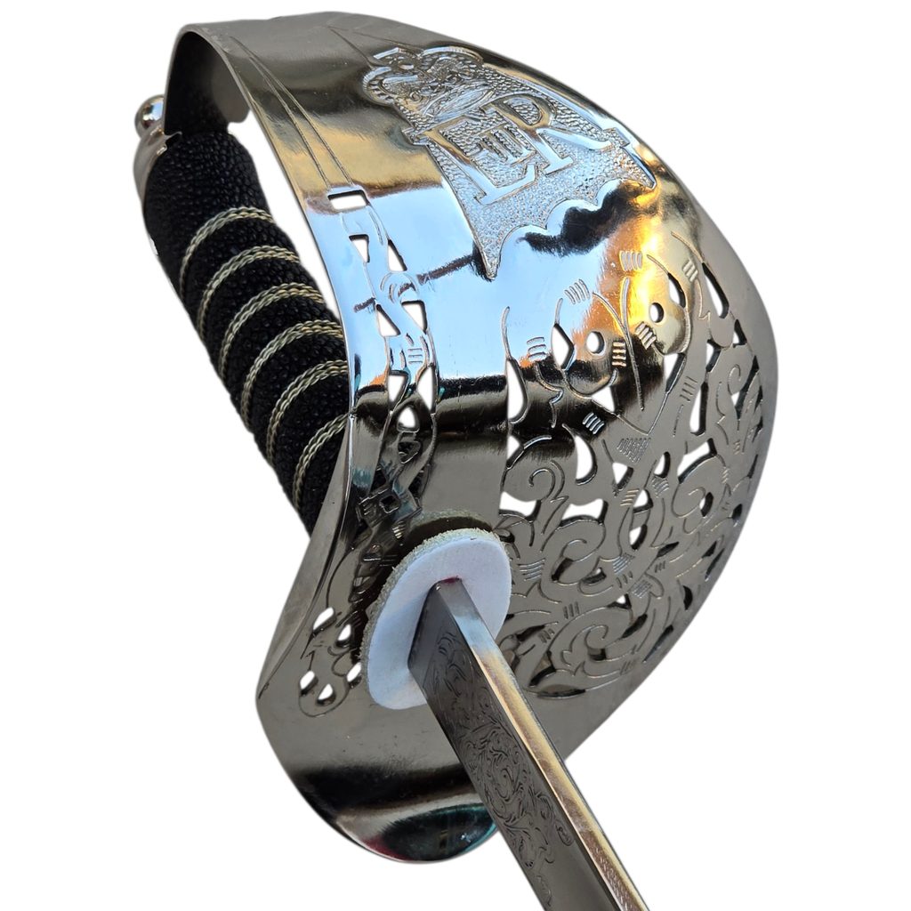 Tato replika britské pěchotní důstojnické šavle vzor 1897 má čepel kovanou z kalené uhlíkové oceli 1055. Čepel je na obou stranách bohatě zdobena leptaným filigránem a královskými vojenskými motivy.