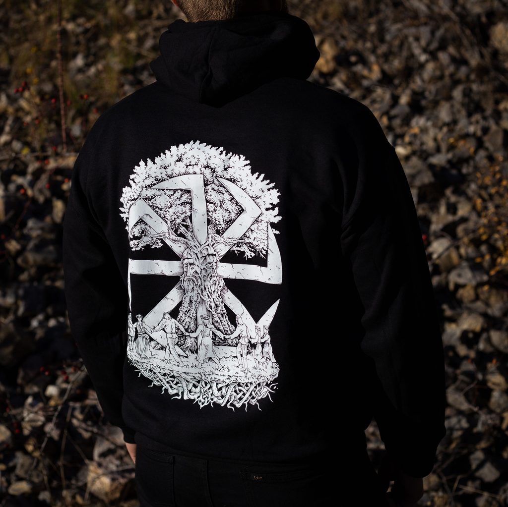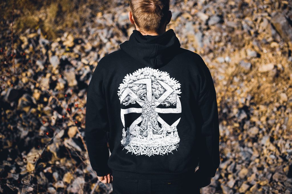 Slovanské bratrství - vzešli jsme z jednoho kmene, uctívali společné Bohy a sluneční kotouč (symbolizovaný kolovratem). Výjev na tričku je obrazem těchto starých časů. Lidé slavící Slunovrat se drží pospolu za ruce a představují jednotlivé slovanské národy, tančí kolem Stromu života jehož kořeny jsou propojeny stejně tak jako kořeny naše. Svědkem všeho dění je Bůh Svantovít.