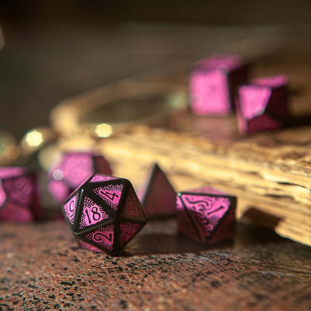 My v Q WORKSHOP neúnavně pracujeme na vytváření designů, které dokážou okouzlit vaše oči a jemně se dotknout vaší představivosti jiskrou zvrácené zvědavosti – aby vás vtáhly hlouběji do lovecraftovského mýtu s pomocí oficiální Call of Cthulhu Dice Set – 7. edice. Od té doby spatřilo světlo světa mnoho návrhů – a tento je jedním z nich.