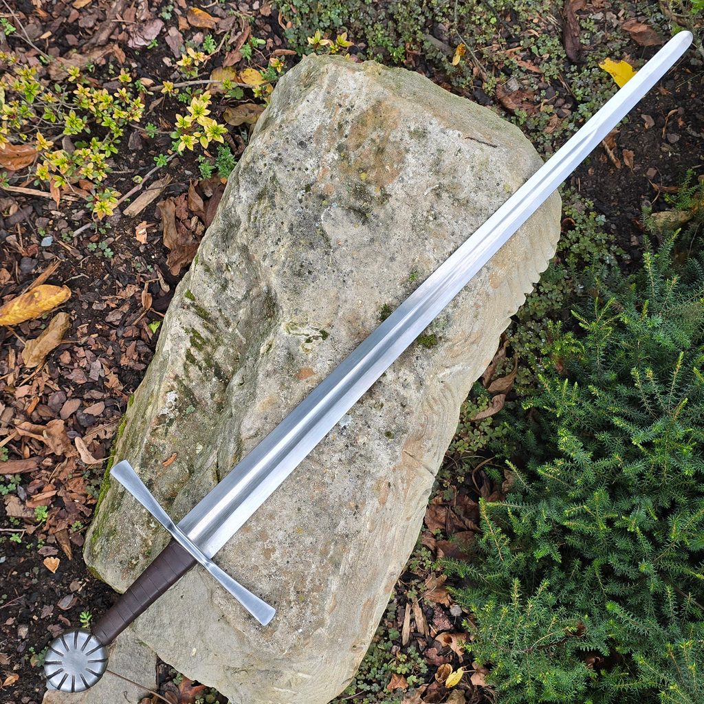 Špičkové středověké meče po několika letech vyvinuté a vyrobené v naší kovárně vyslyšely hlasy šermířů po funkčních replikách, velmi odolných při historickém šermu. Mají Full-Tang konstrukci, která se osvědčila nejvíce. U těchto mečů čepel přechází v jednom kuse přes rukojeť do hlavice na jejíž povrchu je roznýtována. Odpadá zde tedy svařování mosazí a teplotní ovlivňování. Čepel má tedy velmi dobré vlastnosti po celé své délce.
