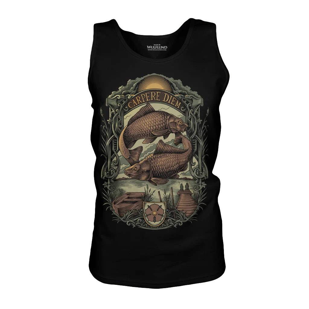 Jedinečné jihočeské rybářské tílko se slovní hříčkou "Carpere Diem" (kapří den) narážející na slavné latinské rčení "Carpe diem", tedy užívej dne!
