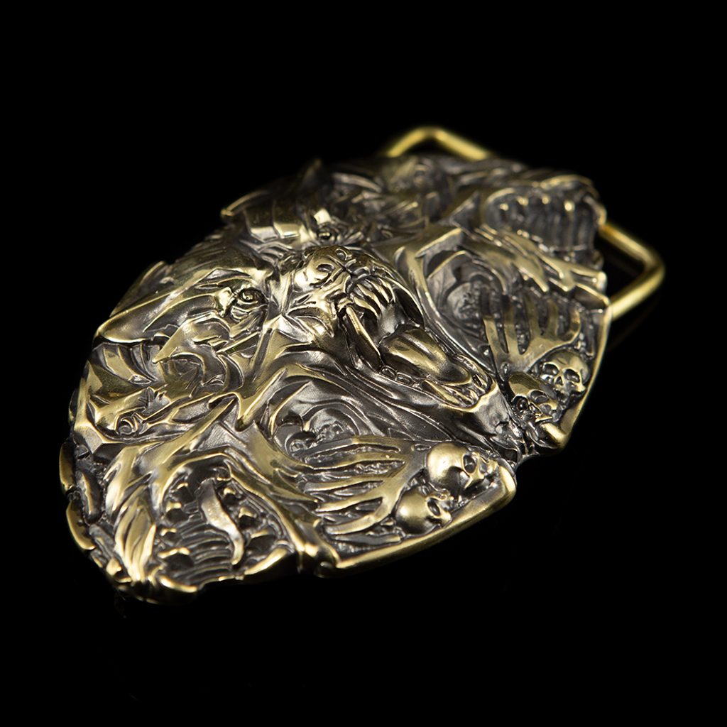 Přezka je odlitá z mosazi. Po odlití je každá přezka ručně opracována. Následně je opatřena patinou a znovu vyleštěna. Přezka je dodávána včetně mosazného rámu ve dvou velikostech na výběr (38 mm a 45 mm) pro pozdější uchycení na opasek.
