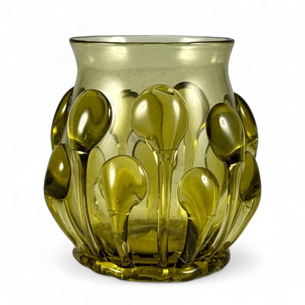 Překrásně zdobený středověký pohár ze zeleného skla. Inspirován středověkým zdobením převážně z Čech.