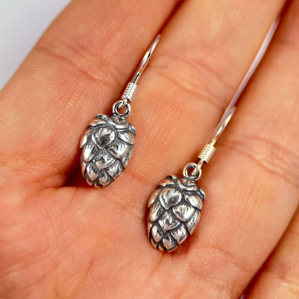 Chmelová šiška, originální stříbrné náušnice pro nadšence piva. Budete doslova nosit na sobě chuť chmele a piva - tohoto lahodného lektvaru :) Tento šperk Vás nejen ozdobí, ale zároveň symbolizuje hluboké spojení s českou tradicí pěstování chmele a pivovarnictví. Ideální pro nadšence chmele a piva, tato stříbrná podoba nádherně zachycuje naše dědictví pěstování chmele.