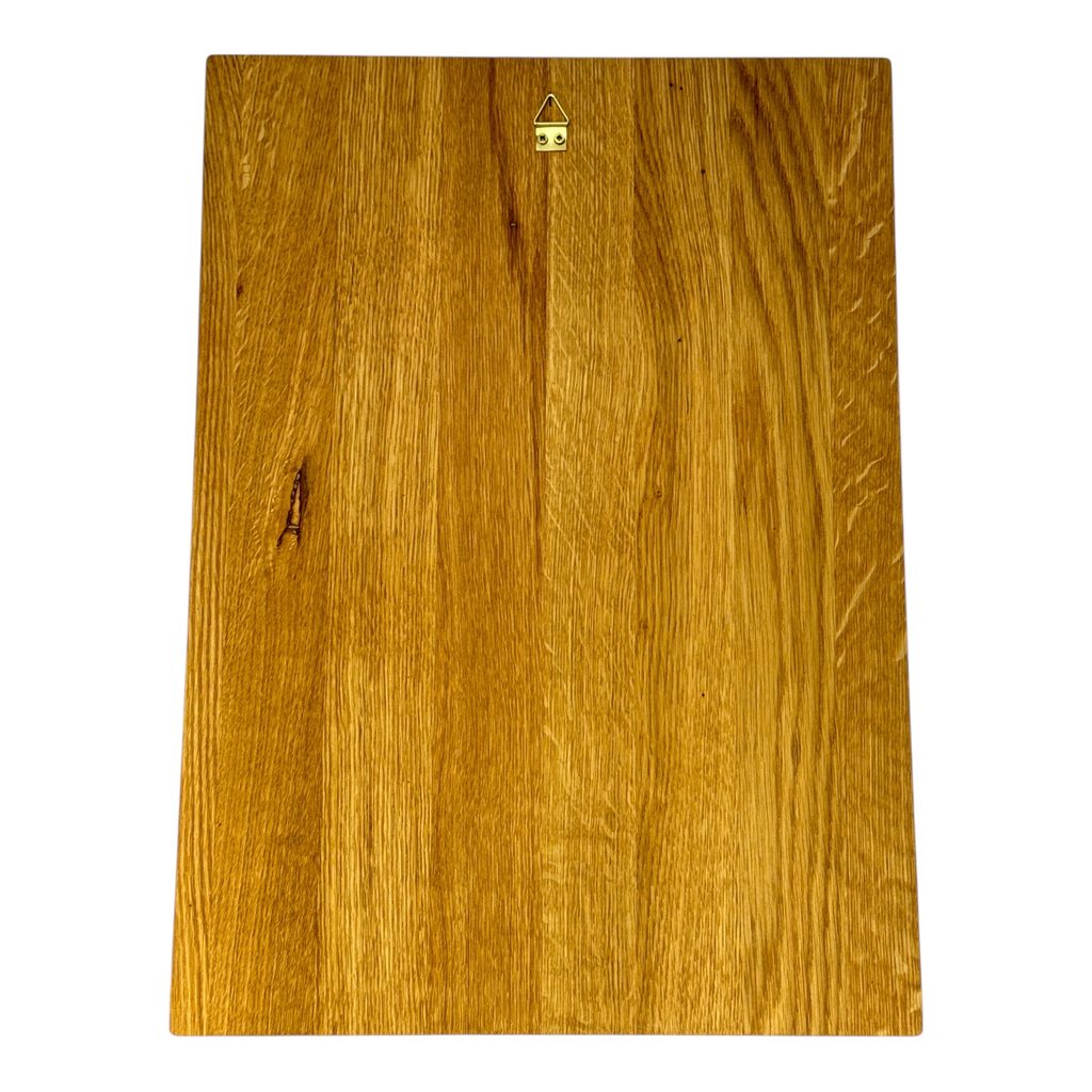 Obrazy jsou vypalované do dubového dřeva. Dub zanechává krásnou texturu díky různé tvrdosti zimních a letních letokruhů.
