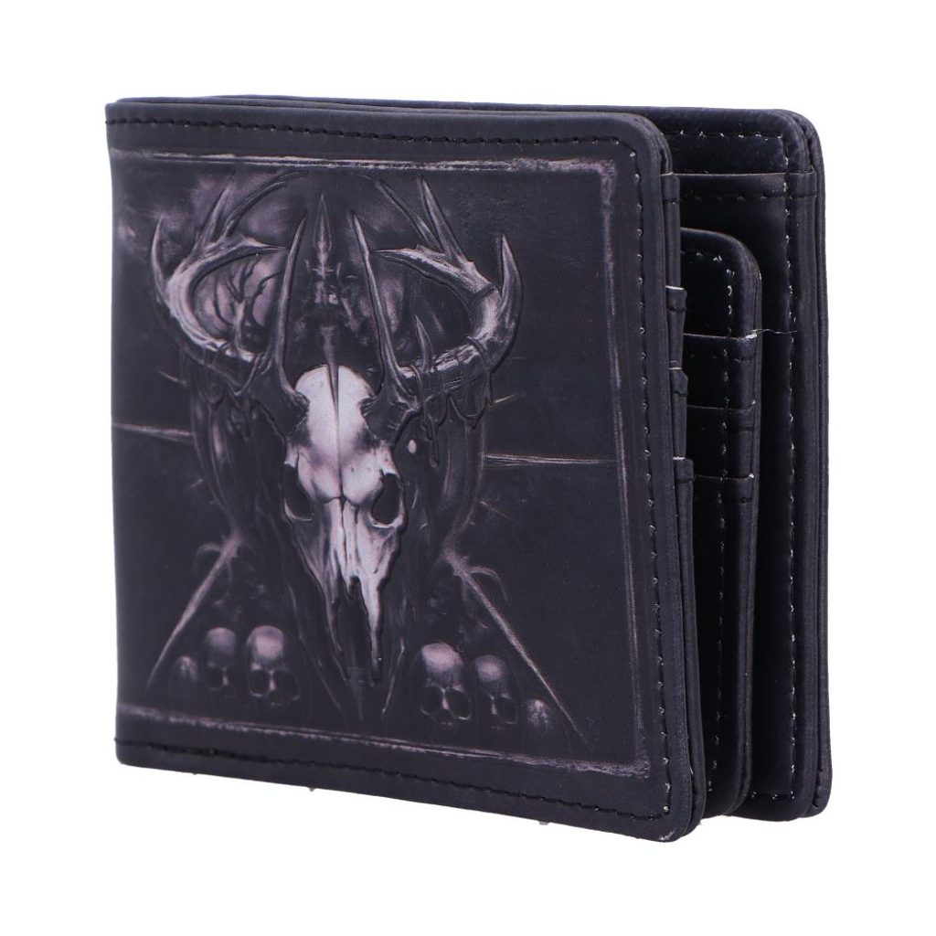 Tato peněženka upoutá pozornost tmavou a tajemnou výzdobou – reliéfní ornamenty inspirované znameními a předtuchami pokrývají přední i zadní stranu. Uvnitř najdete několik přihrádek na karty, zipovou kapsu na mince i prostor na větší bankovky. Vyrobena z PU imitace kůže, díky čemuž snadno odolá běžnému používání. Dodávána v ochranném celofánovém sáčku, takže dorazí nepoškozená. Doplněk pro milovníky temných lesů, mystiky, který udělá radost.
