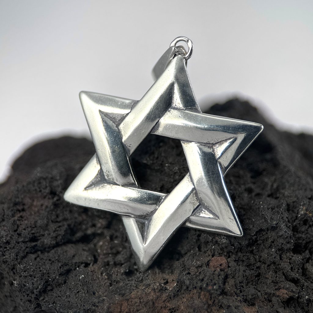Velká Davidova hvězda vyrobena ze stříbra a odlita metodou na ztracený vosk.