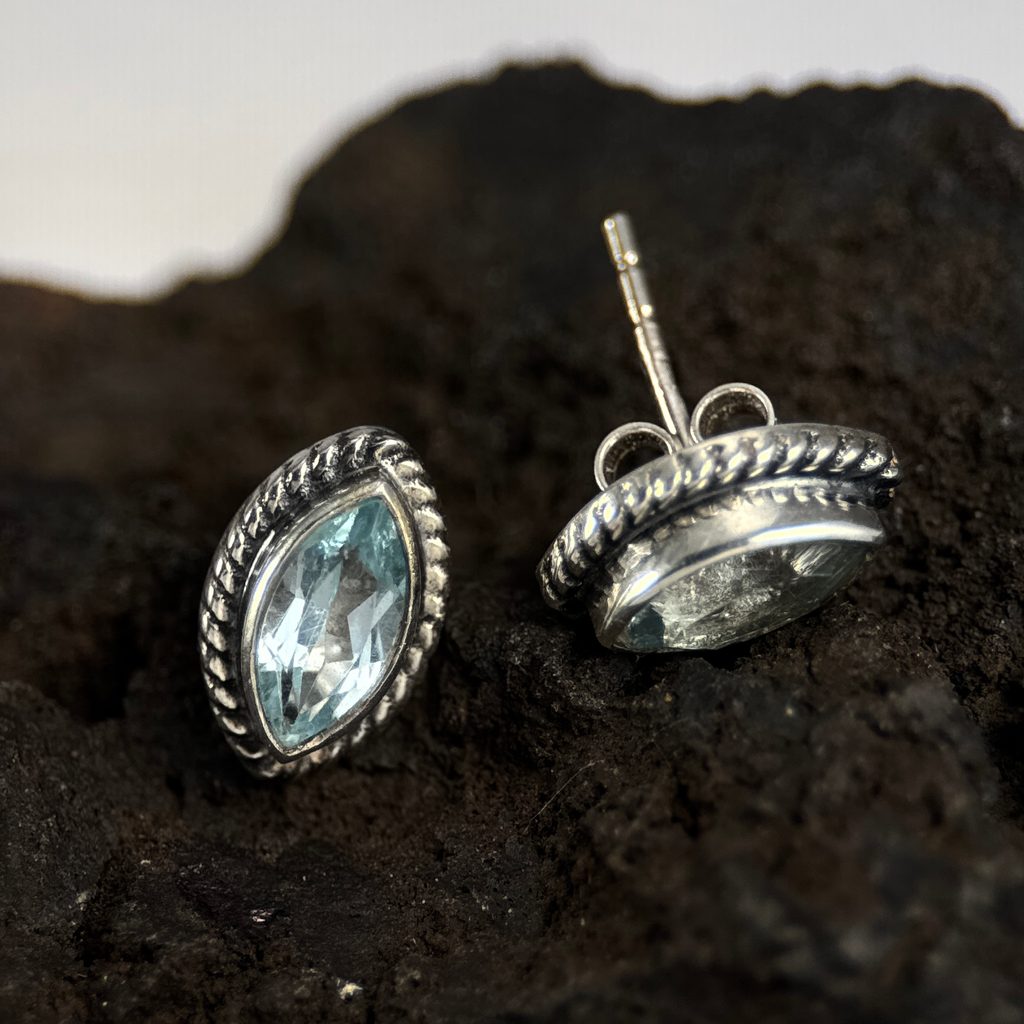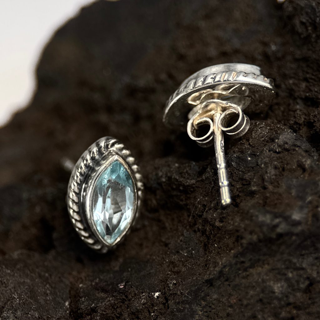 Krásné peckové náušnice DINA upoutají pohled svým štíhlým, podlouhlým tvarem marquis (markýza) o rozměrech 4×8 mm. Fasetovaný brus (FCTD) krásně rozptyluje světlo a zdůrazňuje čistě modrý lesk topazu, který působí svěže a vzdušně.
