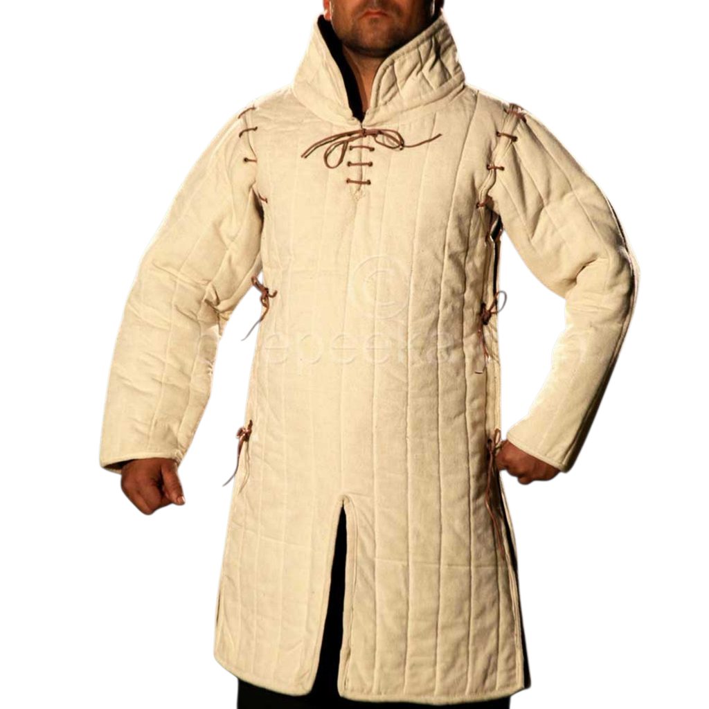 Díky délce a konstrukci pokrývá trup delší částí – vhodné pro období středověku, kdy podobné polstrované vrstvy pomáhaly rozkládat údery a chránit tělo.