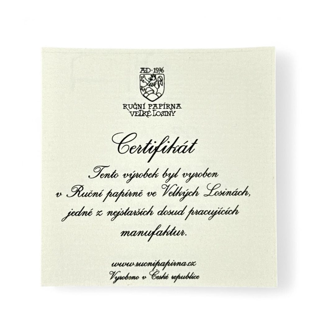 Vyrobeno v nejstarší funkční papírně ve střední Evropě (Velké Losiny), kde výroba probíhá od XVI. století.