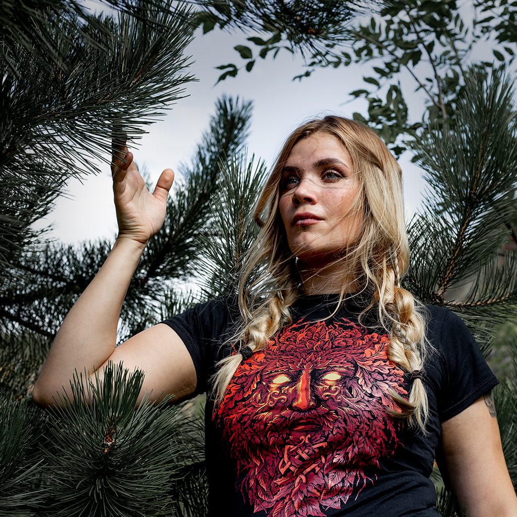 Zelený muž - tričko. Je naše civilizace vůbec ještě schopna vnímat tyto prastaré duchy přírody? Věříme, že někteří lidé to stále ještě dokáží. Dříve je naši předci vídali běžně v různých podobách, zobrazovali je v architektuře, po staletí a nevykořenilo je ani křesťanství. Jsou opravdu silní. Zelený Muž je zpět .... a Ty, zastav se a pohlédni do Jeho očí, co vidíš? "Sílu, obrodu, majestátnost, zánik a počátek, nespoutanou přírodu, která však volá o pomoc .. a možná i smysl našeho bytí."