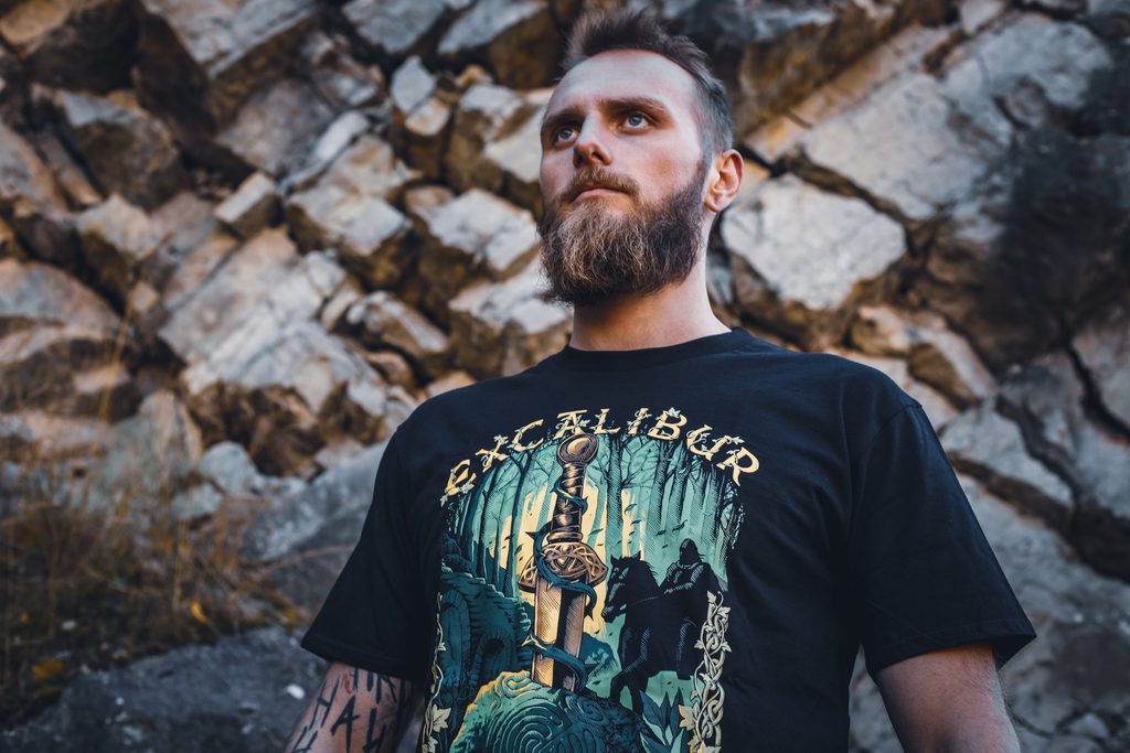 Meč EXCALIBUR. Tímto tričkem se vracíme ke kořenům - do doby, kdy jsme hltali artušovské legendy, tehdy se v hlavách nejednoho mladého člověka utvářel svět historie a mystiky. Jsou to příběhy o králi Artušovi, Merlinovi, Lancelotovi či Jezerní Paní.