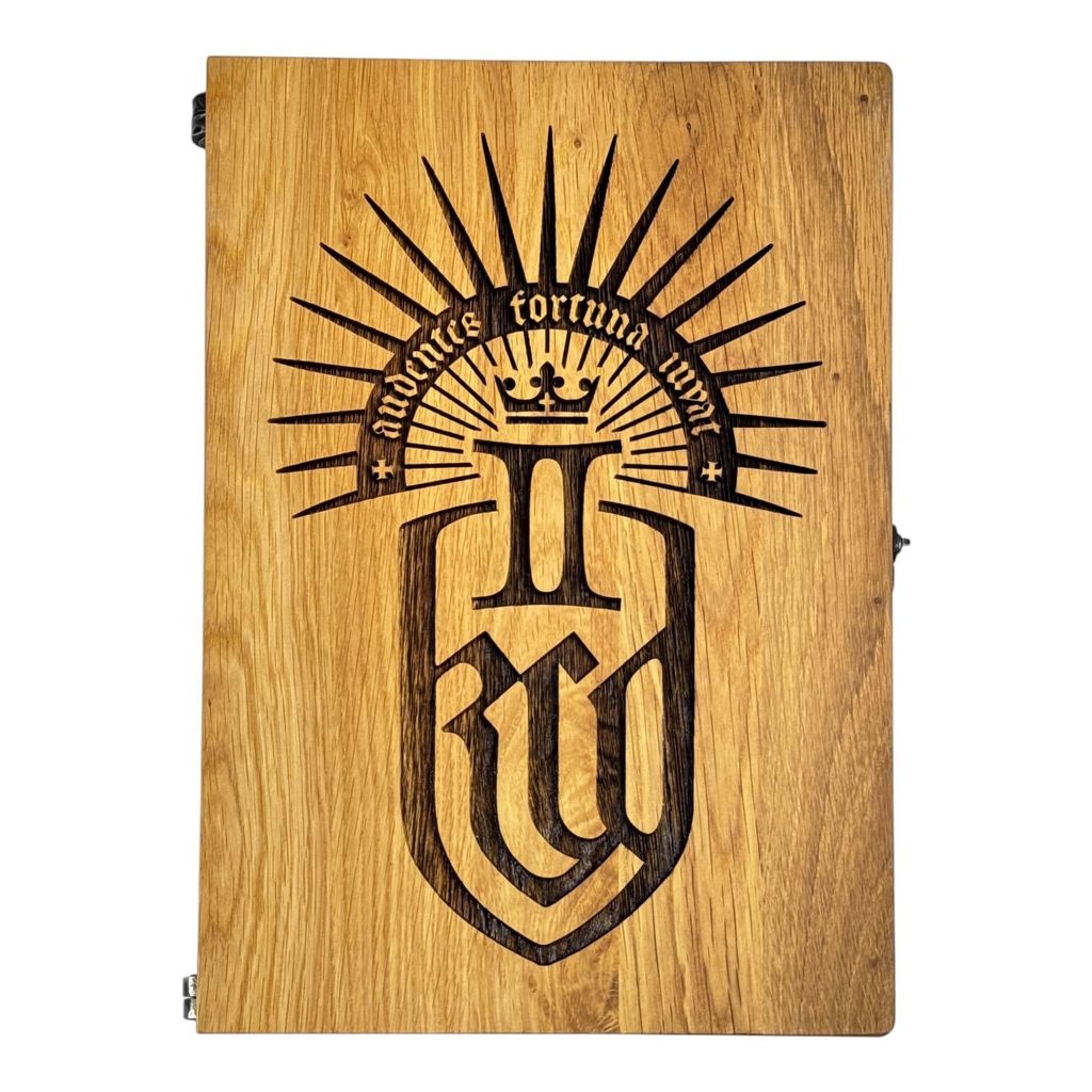 V sadě najdeš 12 kvalitních dřevěných kostek s logem Warhorse Studios a luxusní rozkládací hrací plochu z dubu, zdobenou vypáleným erbem Kingdom Come: Deliverance 2. Každá hra vzniká ruční prací našich řemeslníků – od masivního dubového dřeva až po kovové panty a zavírání. Žádná tovární rychlovka, ale poctivý kus českého řemesla pro fanoušky, kteří chtějí něco skutečného.
