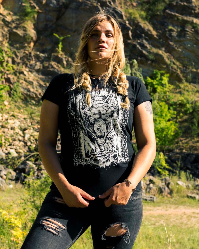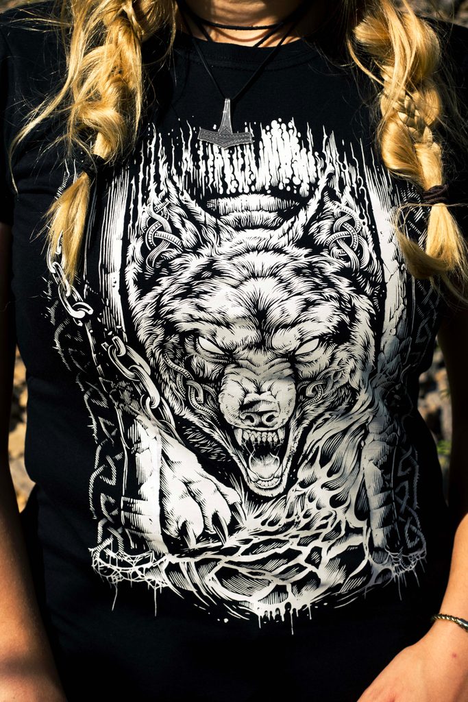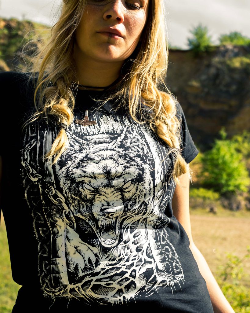 Vlk Fenrir zbavující se řetězů nesvobody. Chladná síla překročí i vroucí lávové pole, pokud se síla spojí s vytrvalostí. Svým pohledem říká: "Nepatřím mezi vás!" Fenrir uznává jen svá pravidla a tato pravidla platí od počátku věků. On bude mít své poslední slovo. Toto tričko patří všem, kteří neohnuli svůj hřbet.