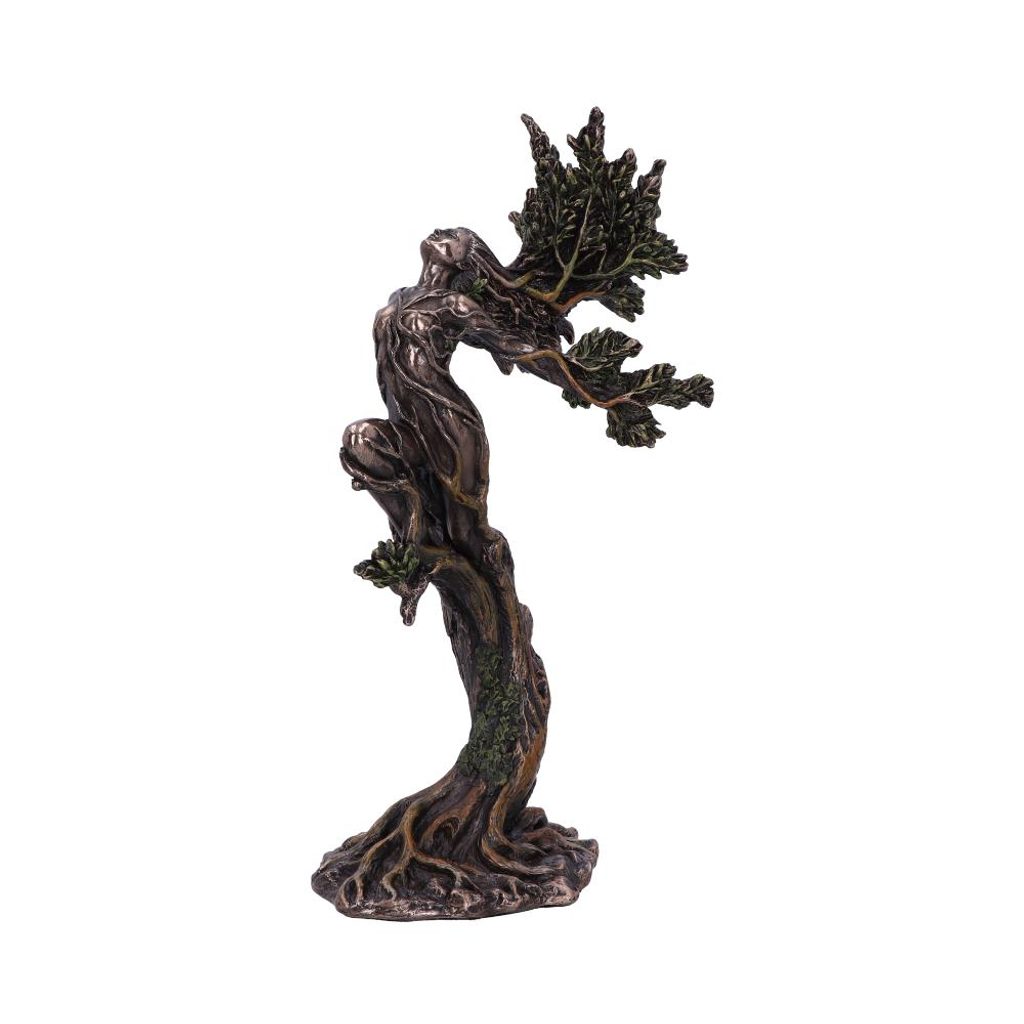 Tato nádherná soška Forest Nymph Elemental z dílny Nemesis Now zachycuje tajemnou lesní nymfu, bytost v dokonalé symbióze s přírodou. Její tělo se jemně prolíná se stromem, z jehož kmene jako by vyrůstala. Zdobí ji detaily připomínající mech, listy a kůru, které podtrhují její propojení s lesem a silami Země. Výraz tváře nymfy vyzařuje klid, moudrost a věčnost, čímž vytváří pocit harmonie a přirozené magie.