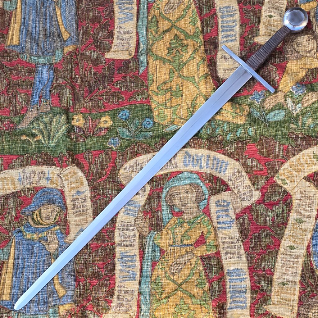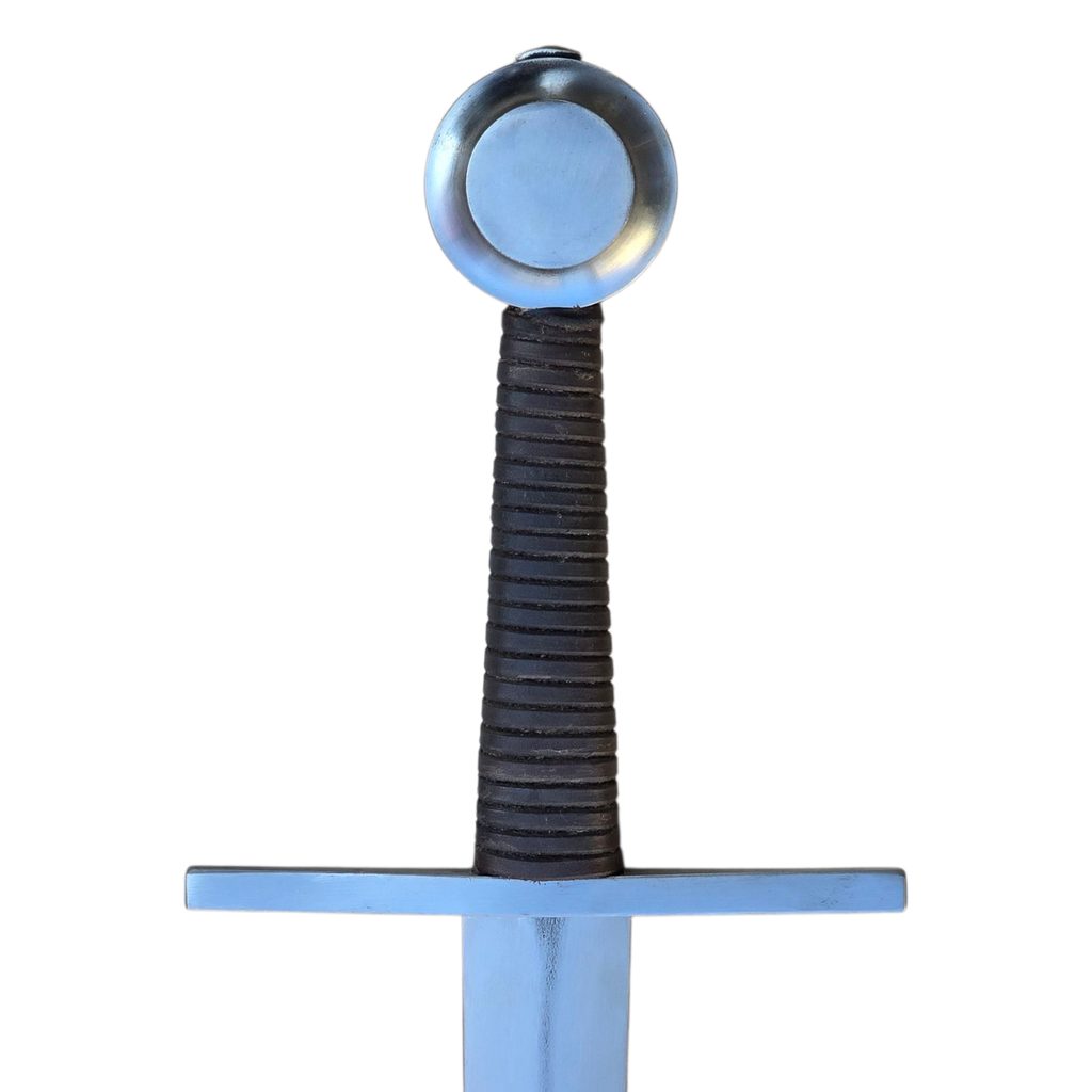Jednoruční středověký meč z naší kovářské dílny. Konstrukčně i řemeslně velmi povedený meč v provedení full-tang. Celá čepel je vyrobena v jednom kuse, skrz hlavici meče, kde je čepel zanýtována. V tomto tupém provedení je meč určen ke scénickému šermu.