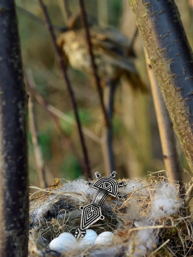Replika germánské brože typu Hahnheim. Detailní replika zoomorfní brože typu Hahnheim podle nálezu z Kentu / Anglie z 6. - 7. století.