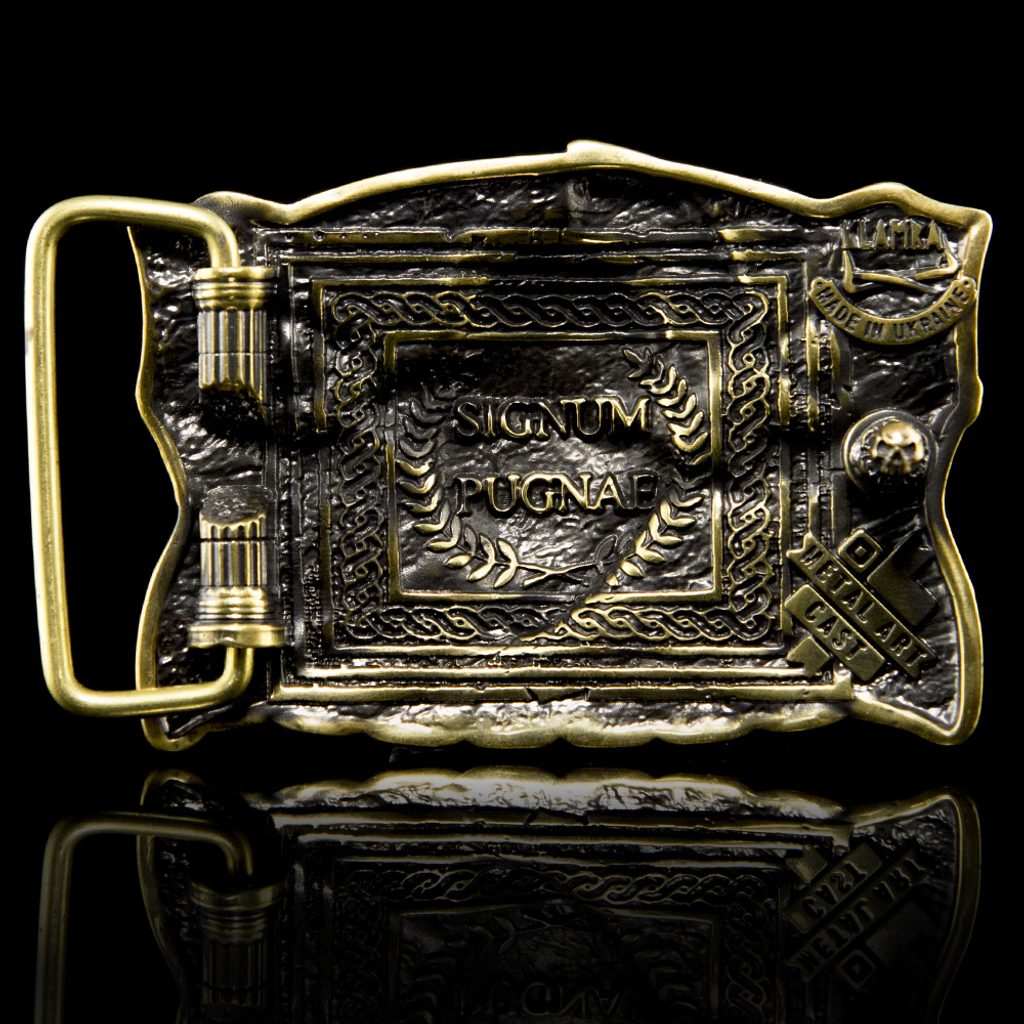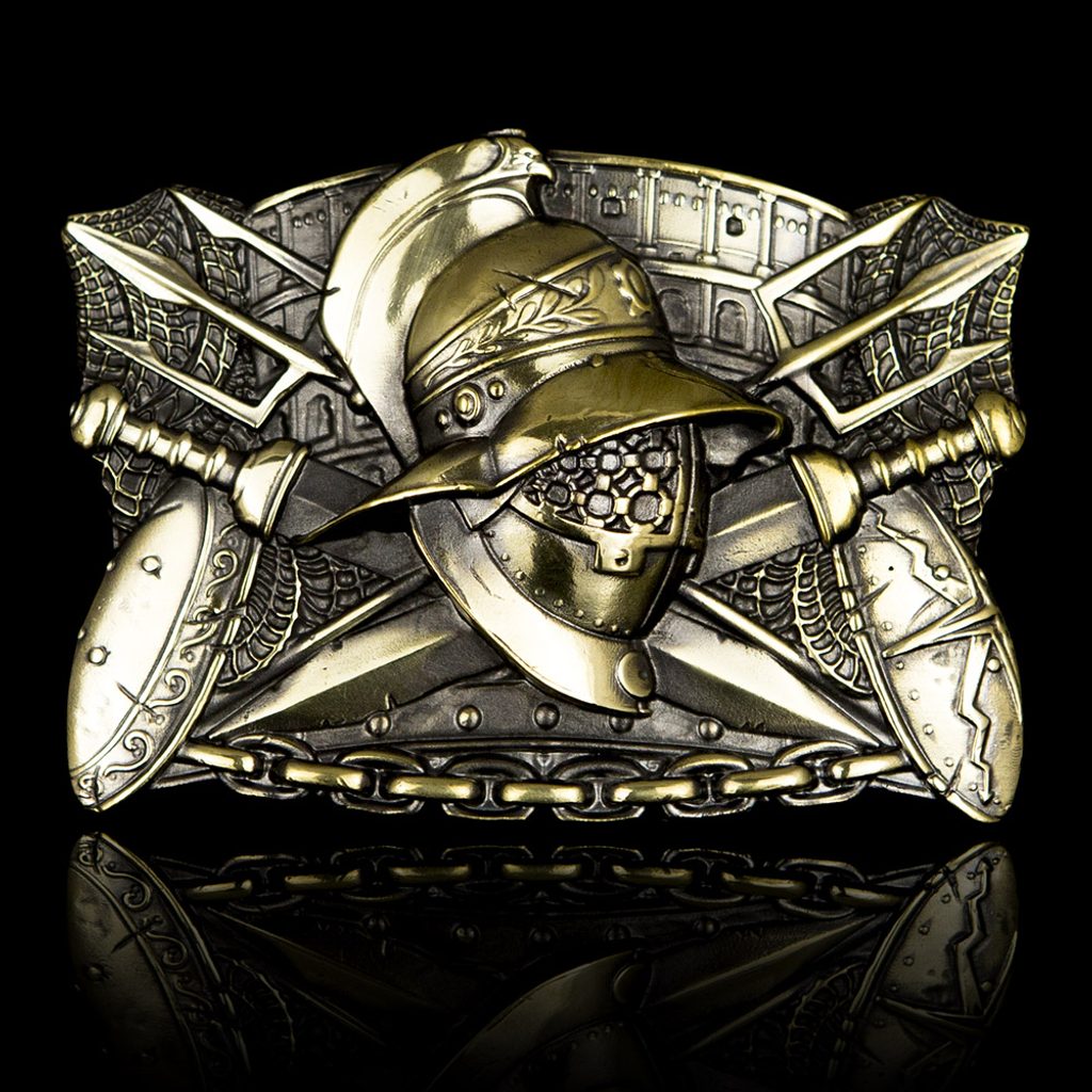 Mosazná přezka „Gladiátor“. Slovo „gladiátor“ pochází z latinského gladius („krátký meč“, „gladiátor“) a doslova znamená „šermíř“. Gladiátoři byli bojovníci, kteří si díky smrtícím zápasům v arénách starověkého Říma získávali svobodu a někdy i peníze a slávu. Postupem času se z gladiátorství stalo povolání s vlastními pravidly, učiteli a školami. Někteří gladiátoři se svou popularitou mohli rovnat i samotnému císaři.