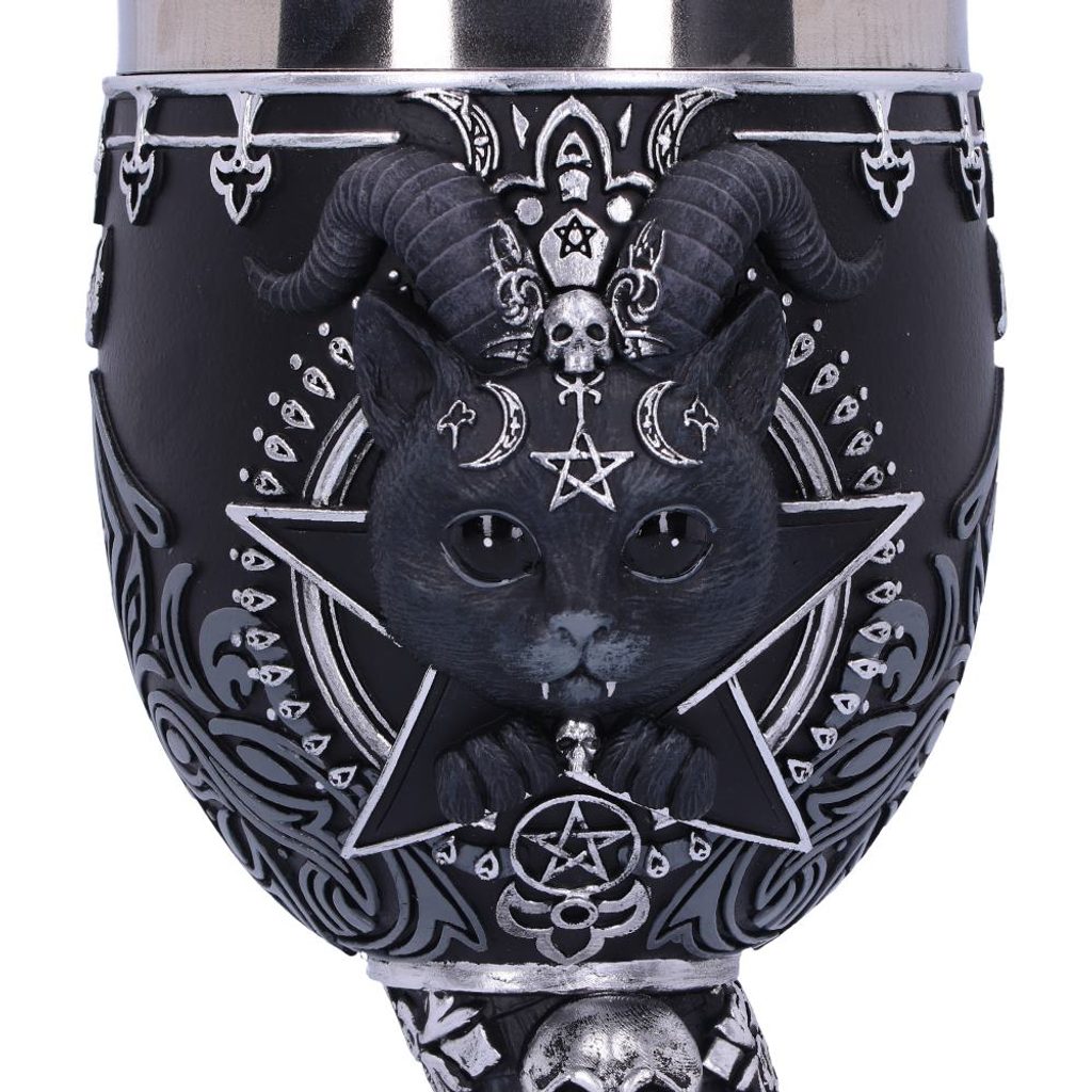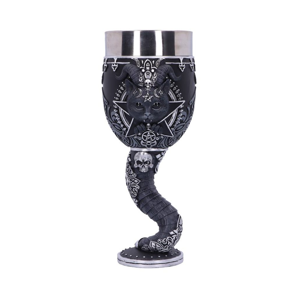 Tento dekorativní pohár s motivem Pawzupha – mystického tvora spojujícího kočku a okultní symboliku – zaujme svým originálním a detailním provedením.