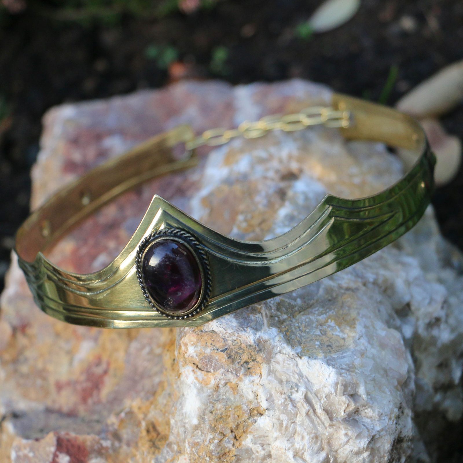 Mosazná a lehce nastavitelná korunka s drahým kamenem dle výběru. Ruční práce.