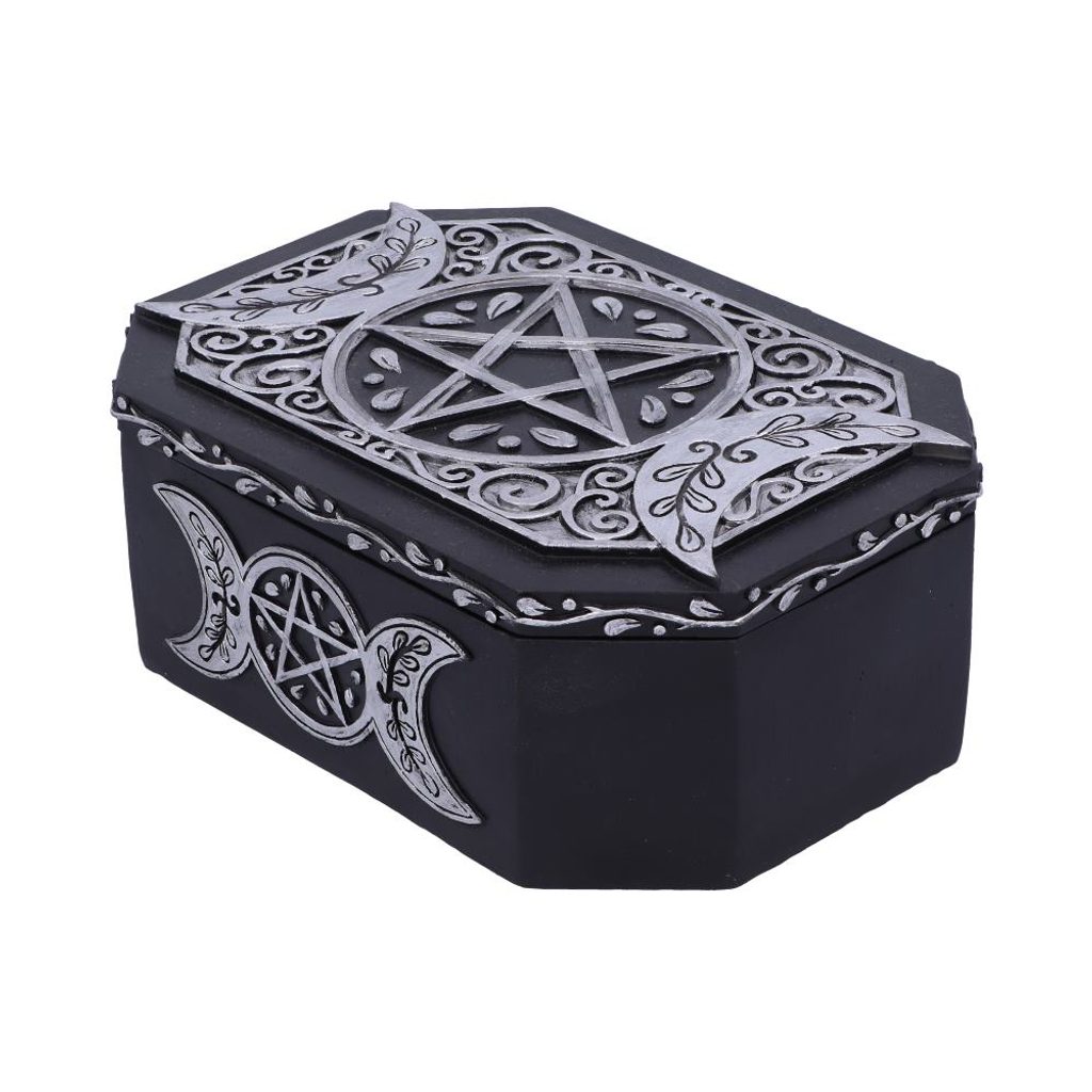 Vhodné pro: ukládání šperků, talismanů, rituálních předmětů, dekoraci s wiccanskou nebo mystickou tematikou, dárek pro milovníky magie a symboliky