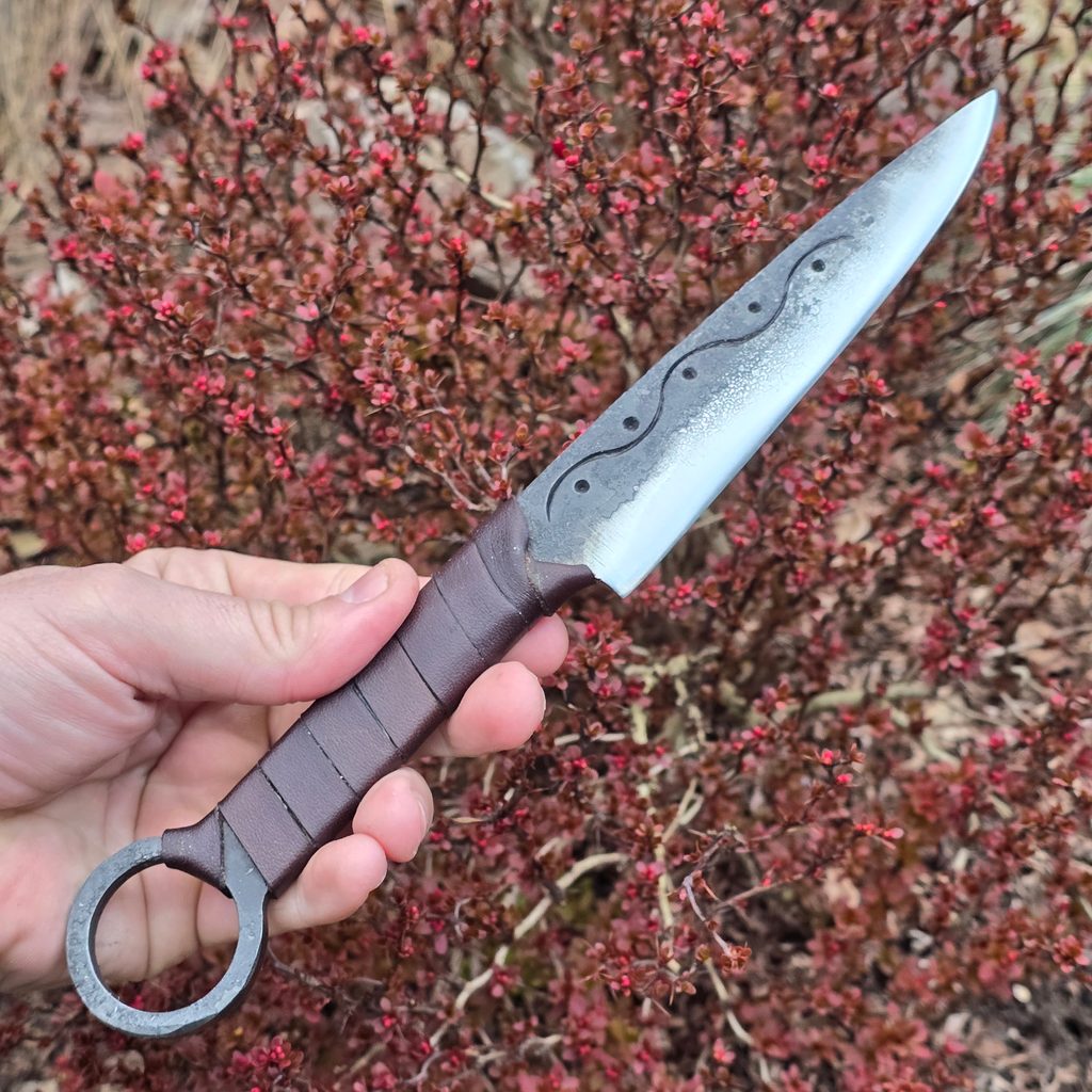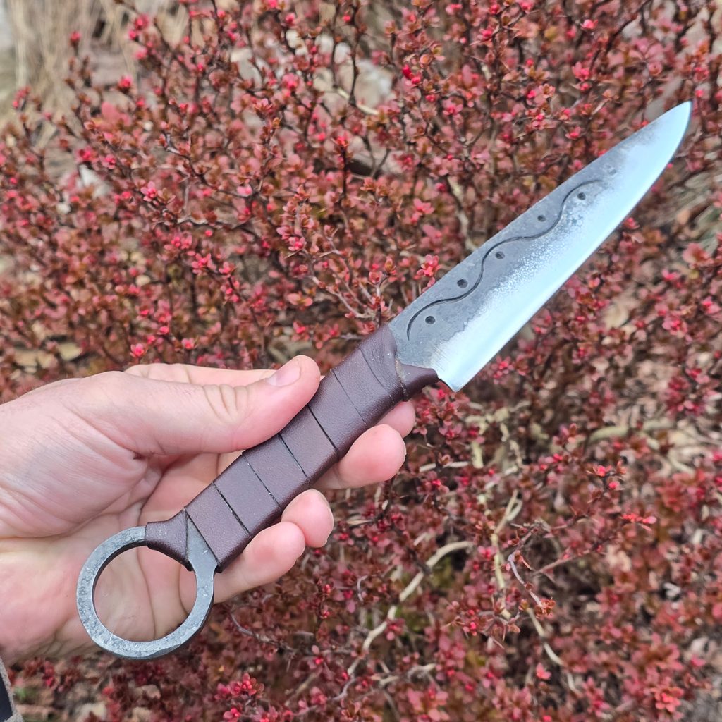 Hibernia - klasický keltský nůž s očkem, zdobený na čepeli z jedné strany. Vyroben z pérové oceli ČSN 14 260 (54SiCr6), která se využívá pro namáhané části v automobilovém průmyslu. Kaleno.