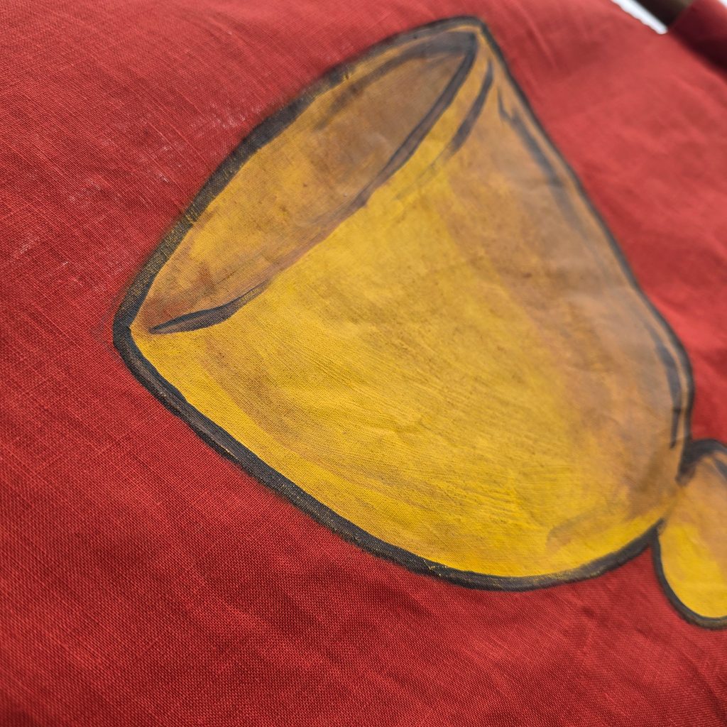 - Technika: strojové šití, ruční malba