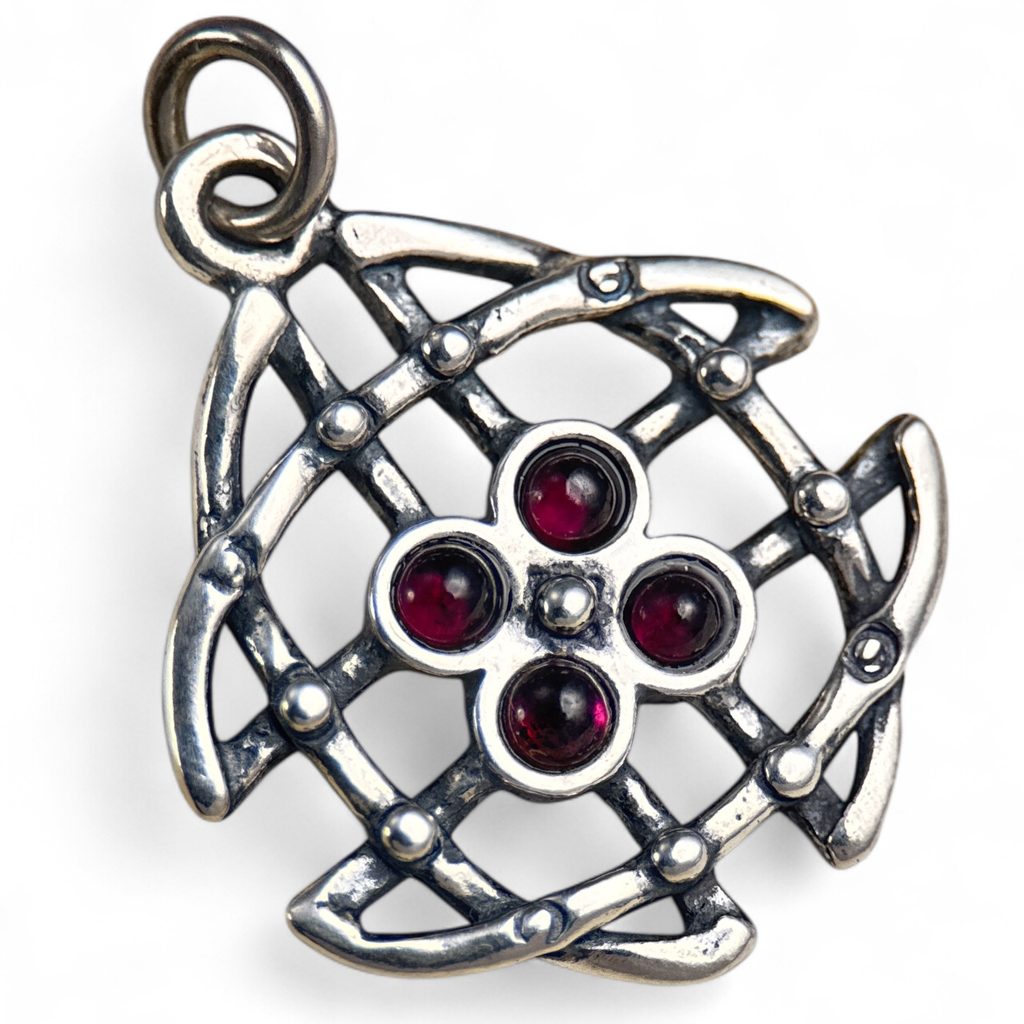 INNIS, keltský stříbrný přívěsek, Ag 925 granáty