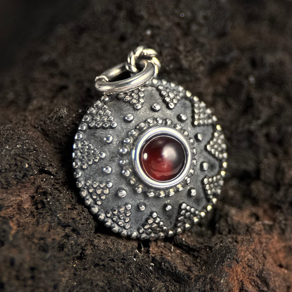 Stříbrný přívěšek tvarem inspirovaný nálezy velkomoravských prstenů.