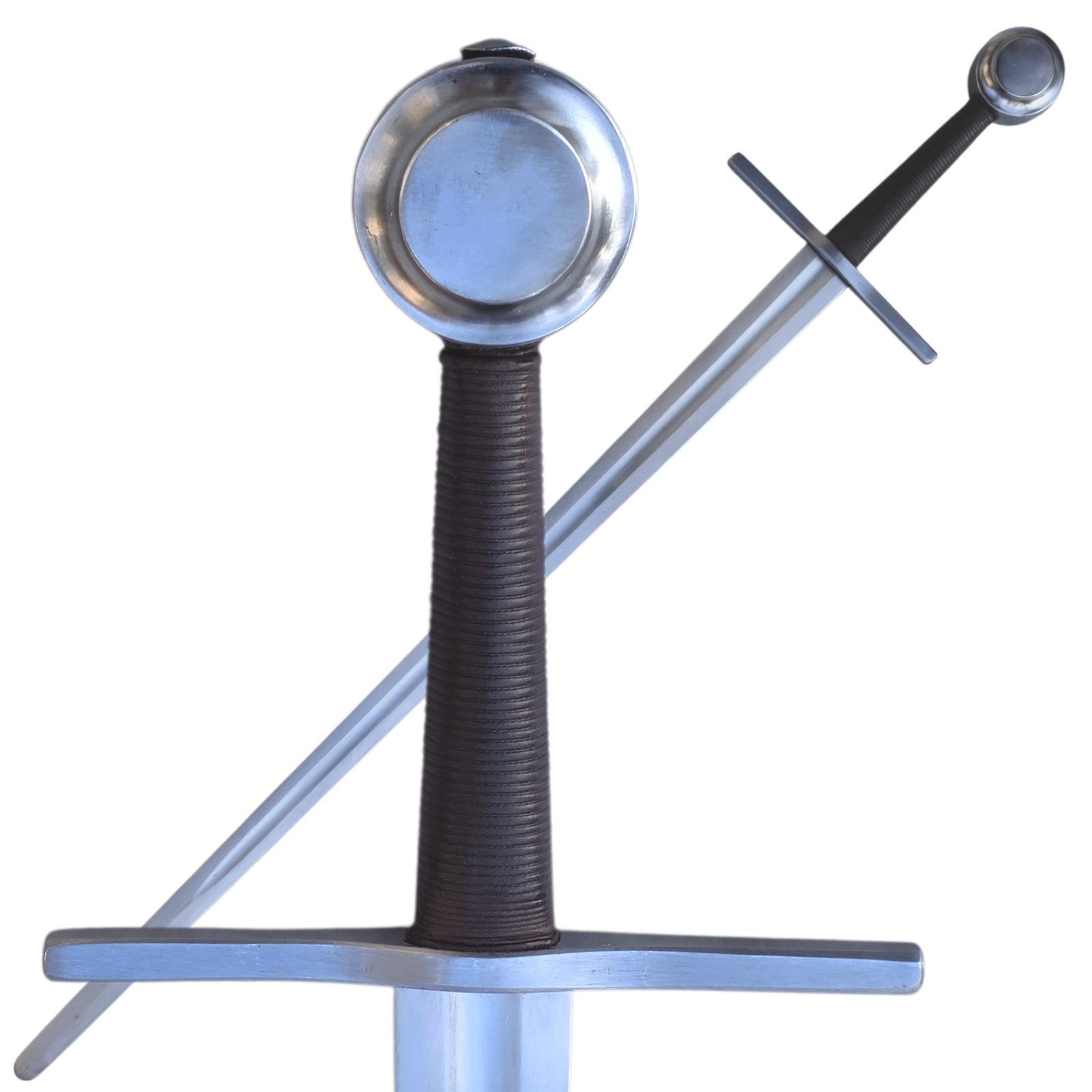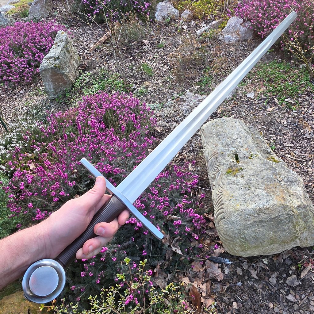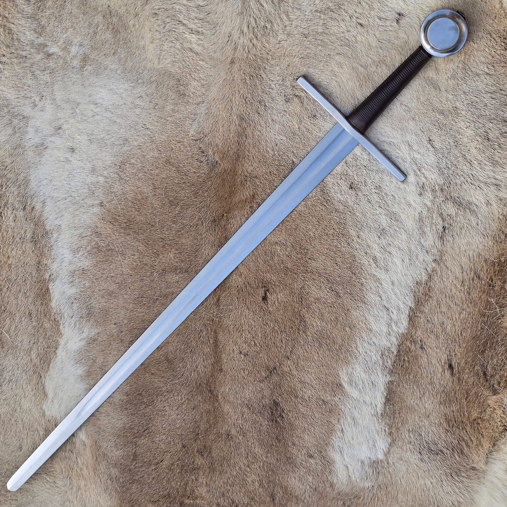 Špičkové středověké meče po několika letech vyvinuté a vyrobené v naší kovárně vyslyšely hlasy šermířů po funkčních replikách, velmi odolných při historickém šermu. Mají Full-Tang konstrukci, která se osvědčila nejvíce. U těchto mečů čepel přechází v jednom kuse přes rukojeť do hlavice na jejíž povrchu je roznýtována. Odpadá zde tedy svařování mosazí a teplotní ovlivňování. Čepel má tedy velmi dobré vlastnosti po celé své délce.