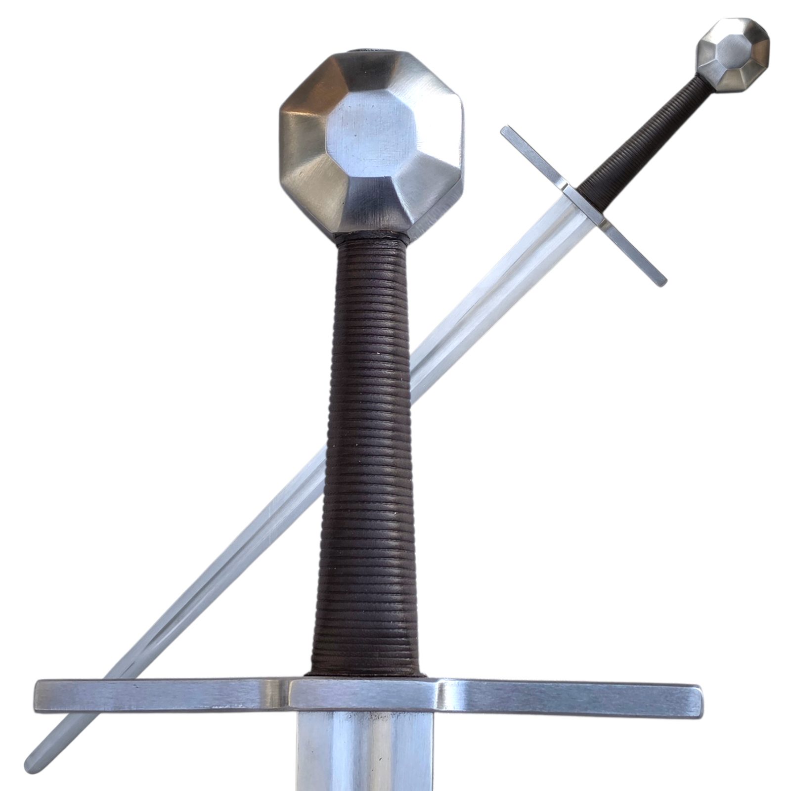 Špičkové středověké meče po několika letech vyvinuté a vyrobené v naší kovárně vyslyšely hlasy šermířů po funkčních replikách, velmi odolných při historickém šermu. Mají Full-Tang konstrukci, která se osvědčila nejvíce. U těchto mečů čepel přechází v jednom kuse přes rukojeť do hlavice na jejíž povrchu je roznýtována. Odpadá zde tedy svařování mosazí a teplotní ovlivňování. Čepel má tedy velmi dobré vlastnosti po celé své délce.