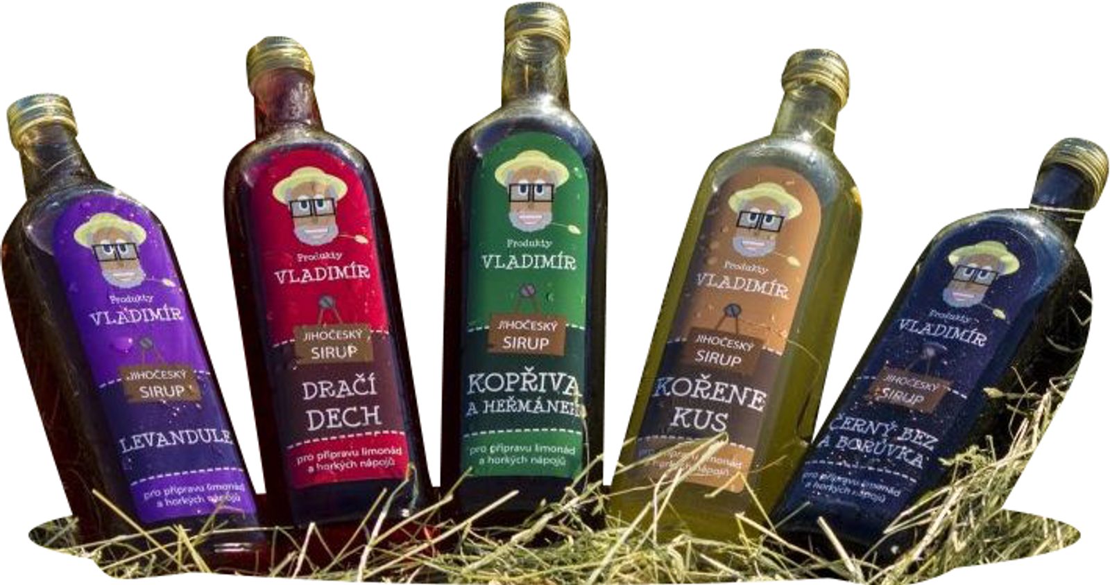 Jihočeské sirupy od Vladimíra, jejichž základem jsou TRADIČNÍ SUROVINY V NETRADIČNÍM SPOJENÍ. Sirupy obsahují: