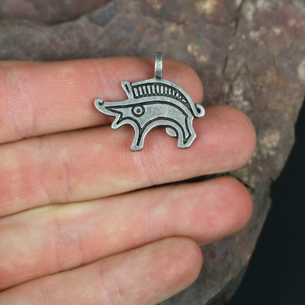 Přívěšek Kanec je inspirován germánskými destičkovými sponami z prvních století n. l. z nálezů z Německa a z České republiky.