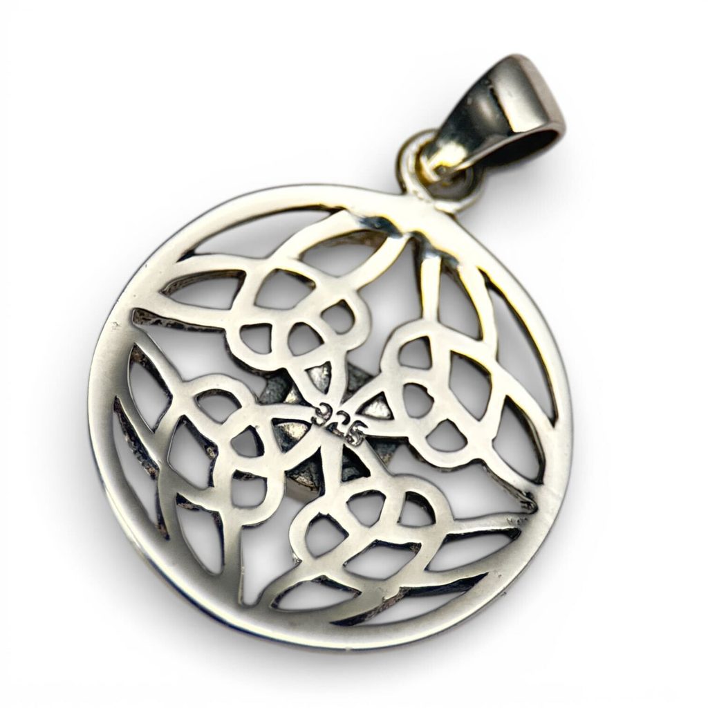 Přívěsek vychází z tradičního keltského propletence – symbolu nekonečna, propojení a kontinuity života. Ladně tvarované linie se uzavírají do kruhu, který představuje rovnováhu a ochranu. Střed zdobí přírodní labradorit s typickými modro-zelenými záblesky. Přívěsek je vhodný pro každodenní nošení i jako osobní talisman.