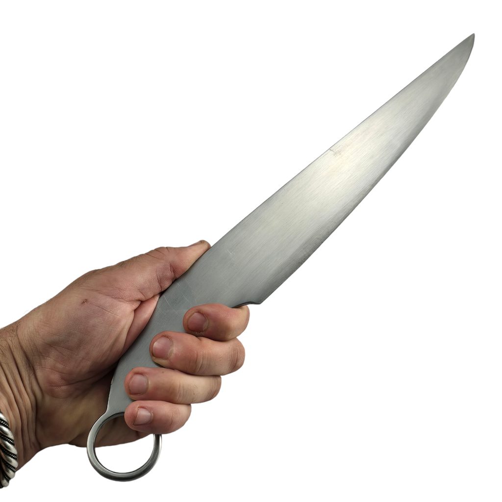 Patří do historického tábora i do moderní kuchyně! Nůž i sekáč v jednom s praktickým očkem na zavěšení.