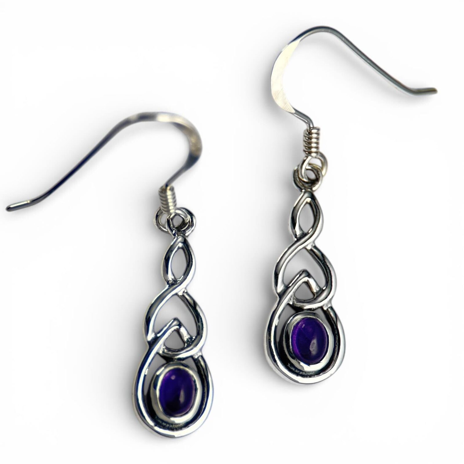 Pod uzlem je zasazen ametyst ve tvaru oválu. Náušnice jsou lehké a pohodlné na nošení.