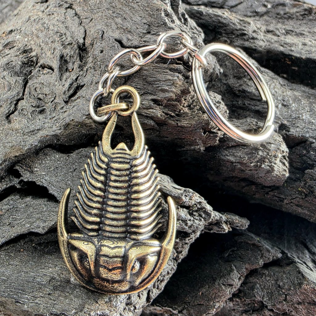 Klíčenka pro nadšence do paleontologie a sběratele trilobitů. Masivní kov, úžasné detaily.