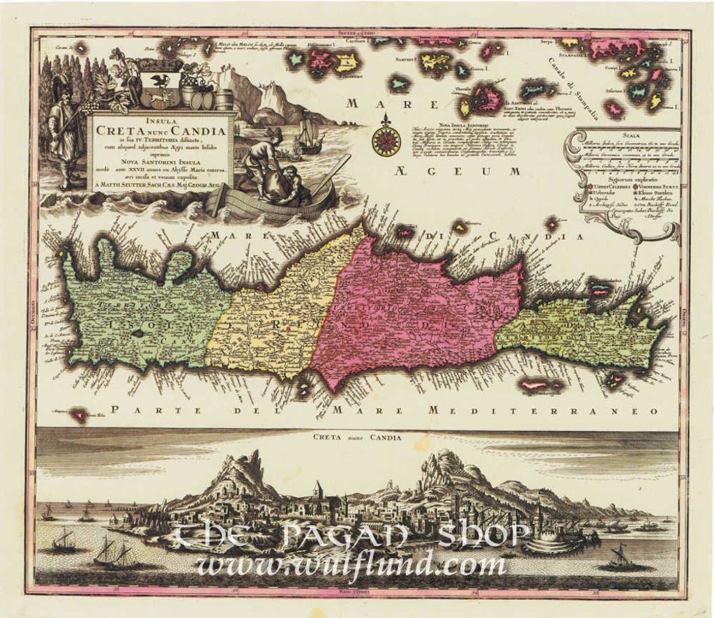 KRÉTA, Georg Matthaus Seutter, 1678 - 1757, historická mapa, faksimile