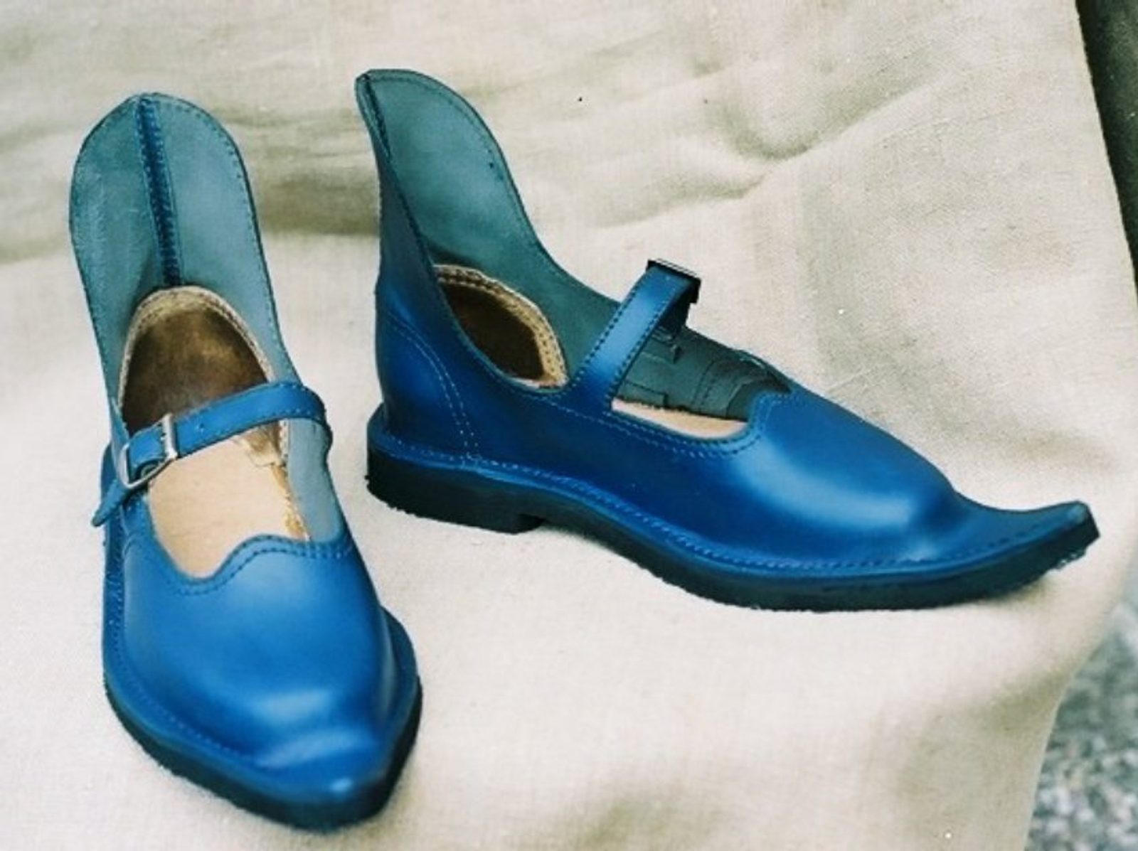 Kožené dámské boty (barvená kůže). 12. - 15. století.