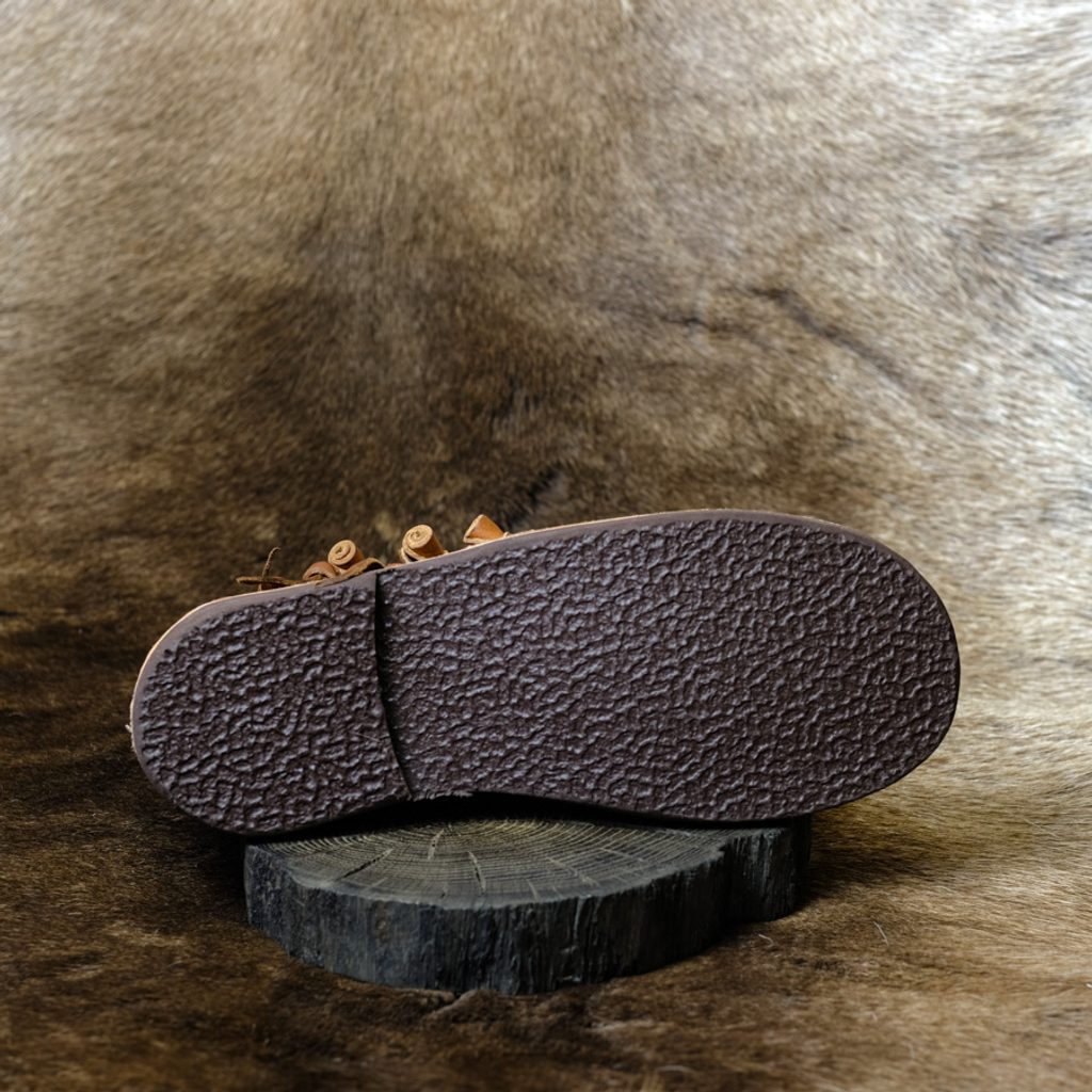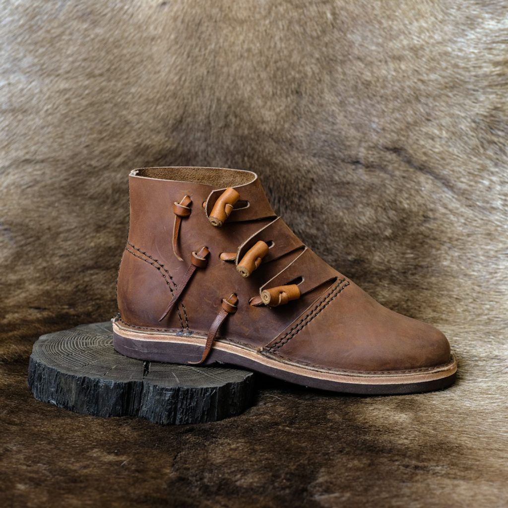 Kožené vikingské boty inspirované nálezem z lokality Hedeby. Hedeby by důležité vikingské sídlo, které prožívalo svůj největší rozkvět mezi 8. a 11. stoletím. Lokalita je situována v jižním cípu Jutského poloostrova.